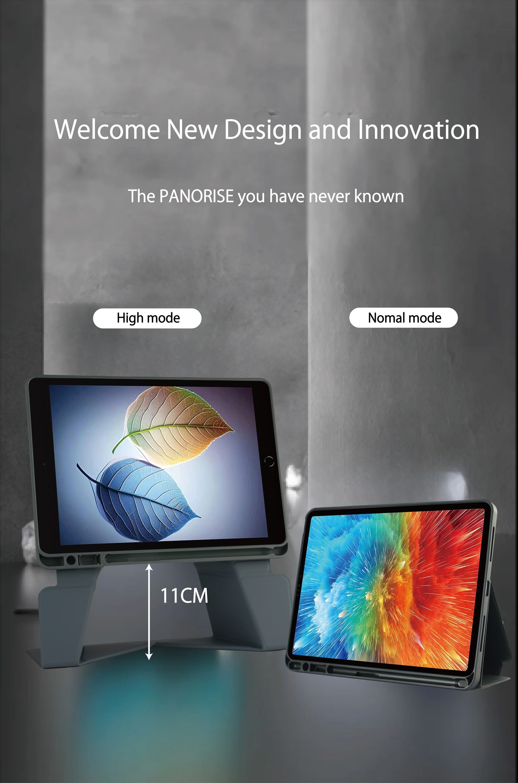圧倒的な高機能iPadケース 「PANORISE(パノライズ)」が新登場。2024年冬の一般販売を前に、先行してMakuakeにて発売決定!通常のiPadケースのように30°・60°に角度を調整できるだけでなく、iPadの高さを11cm持ち上げることができます。高さを上げることで首の角度が上がり、猫背になりがちな姿勢を正します。その結果、肩や首を楽にすることができます。また、視野が広がるため、横になってiPadで動画を見ながらも家族やペットなど周りのことを視野に入れることもできます。しっとりとした手触り・手になじむような適度な厚みで設計しており、あなたにとっての新しい「スマートパートナー」として欠かせなくなる一品です。あなたもこの驚きの機能を備えた「PANORISE」で安心と快適さを手に入れ、仕事や趣味で最高のパフォーマンスを発揮してみませんか?