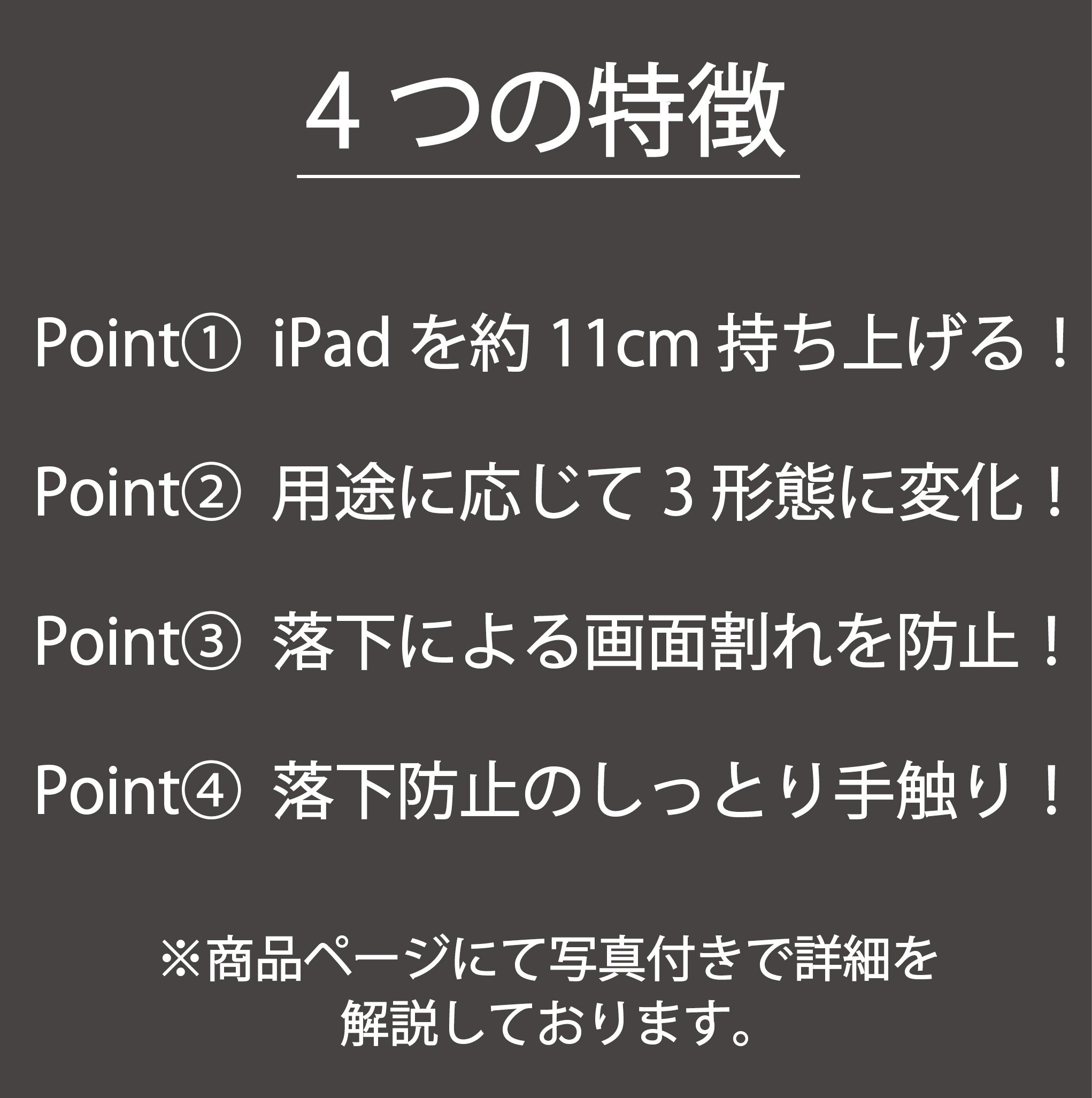 肩首の悩みを持つすべてのiPadユーザーに届け!この "新時代の3WAYスマートパートナー" はあなたのiPadを11cm引き上げ、首肩を楽に&視野も拡大で快適作業をサポートします。
