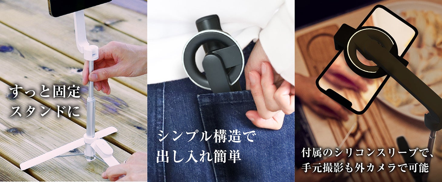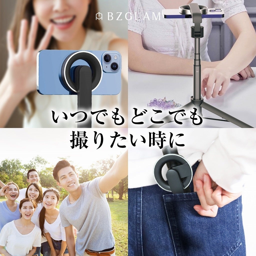 その際によく使用される自撮り棒(セルカ棒)やスマートフォン撮影スタンドですが、私たちはMagSafe機構を取り入れることで、これまでにないシンプルかつ多様性のある製品をリリースしました。