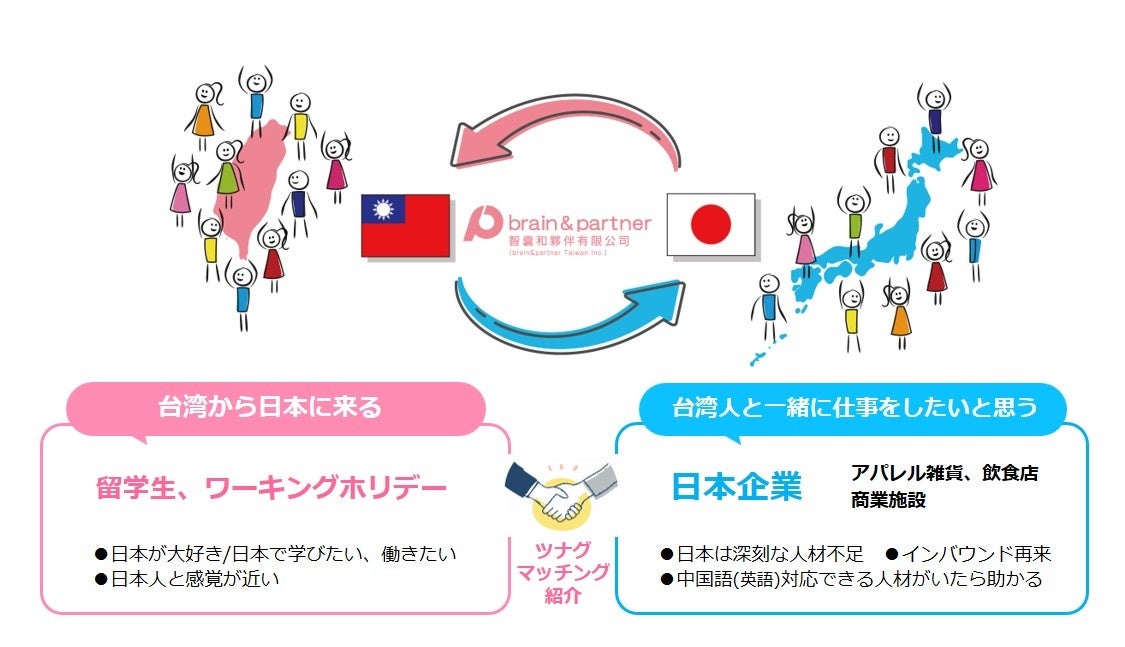 「台湾人と日本企業をツナグ」日本に留学・ワーホリで来る台湾人財と日本企業をマッチング。台湾人が「日本の深刻な人材不足」を救う!