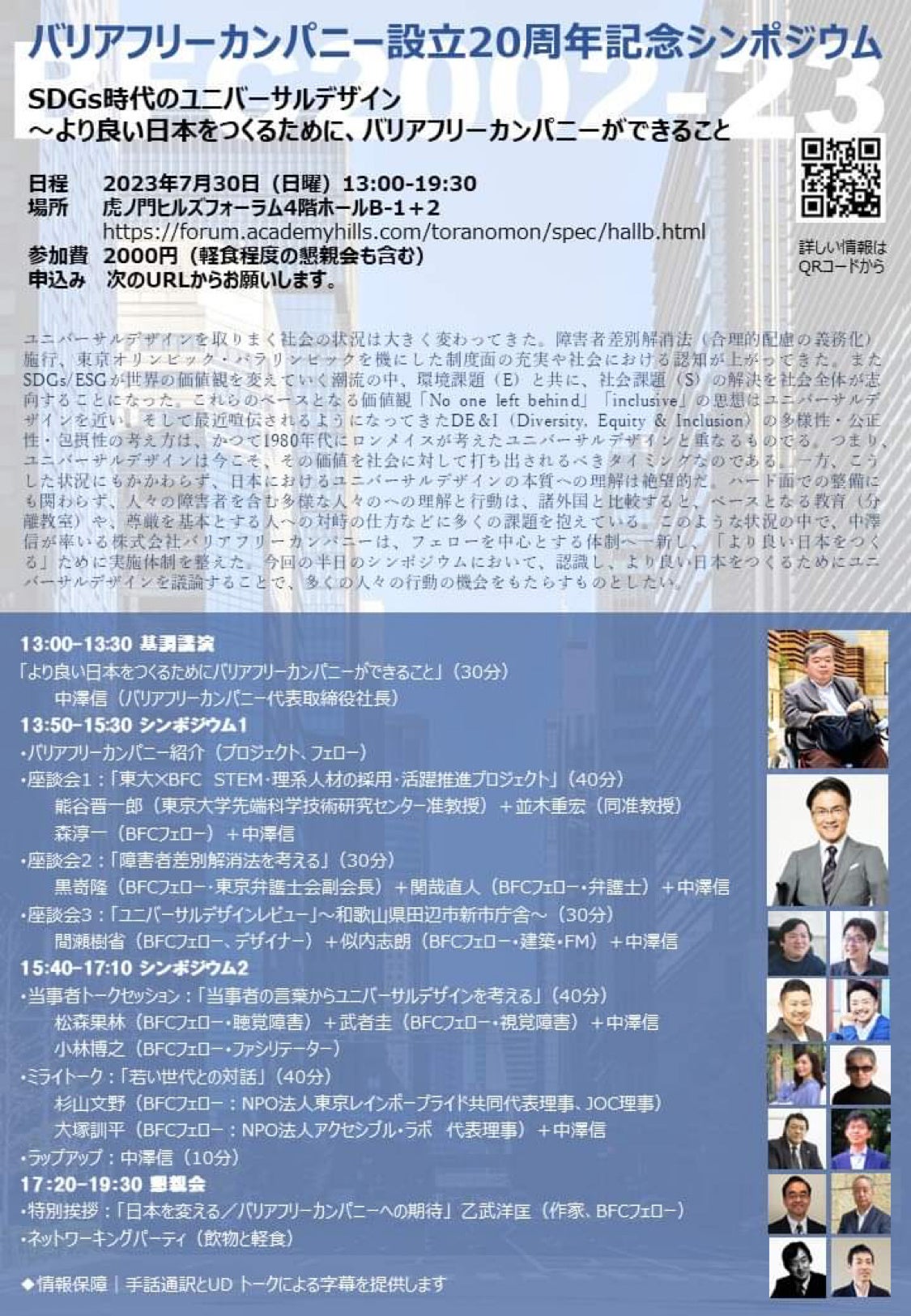 株式会社バリアフリーカンパニー(代表取締役:中澤信)は、2023年7月30日(日)、様々なゲストを迎え、20周年記念シンポジウムを開催します。