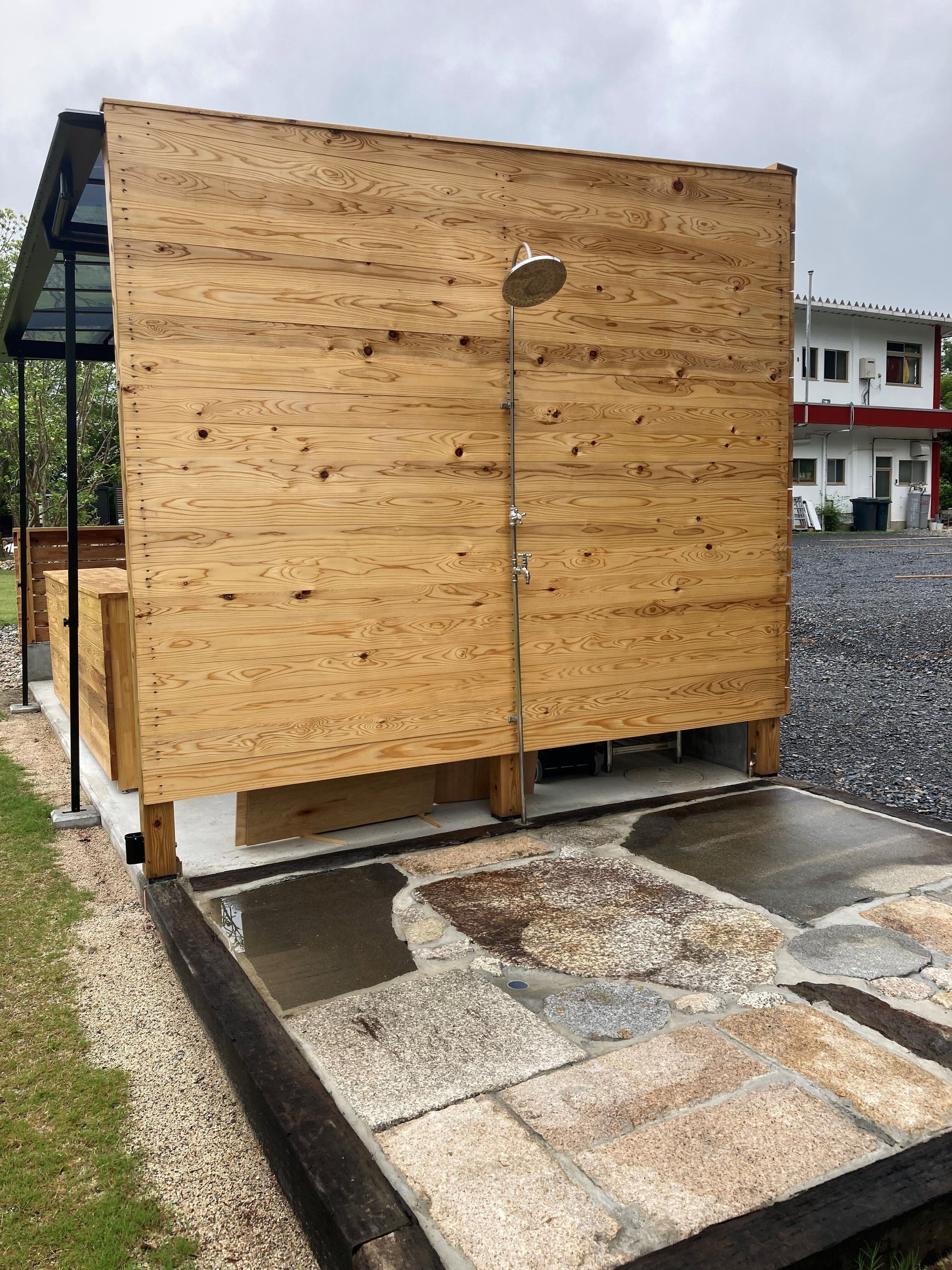 キャンプ場として宿泊キャンプ、デイキャンプやご家族、仲間と一緒にBBQスペースとしてご利用頂ける芝生広場「シバヒロ」と「OUTDOOR LIVING」(コンテナ&庭スペースのレンタル)では自然の中で時間を過ごしたいOUTDOOR派の方々、初心者キャンパーからご家族、本格的なキャンパーの方々にも便利にキャンプを楽しめるよう、屋内シャワー施設、アウトドアシャワー(屋外シャワー)、またお子様やお年寄り、女性の方などにも安心してお使い頂ける清潔な冷暖房完備のウォシュレットトイレも男女別それぞれあり、場内はWi-Fiも自由にお使い頂けます。(施設利用料あり)各サイトにはAC電源とマリンライトも取り付けられた枕木が目印となっており、アウトドアでも便利に過ごしていただける工夫がなされています。