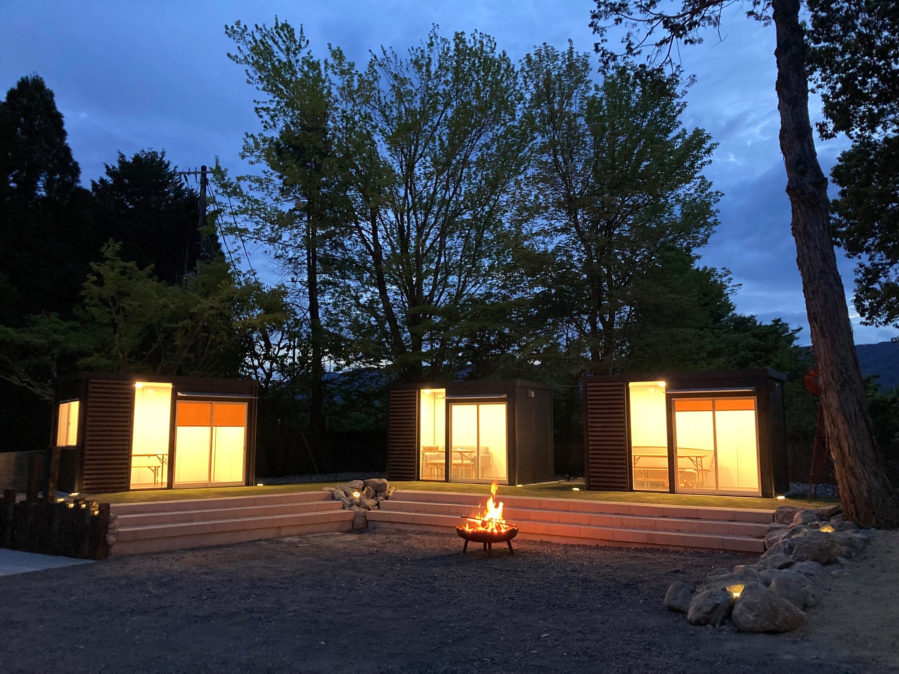OUTDOOR LIVINGスペースは3棟あり、レンタルスペースとしてBBQ、パーティー、パブリックビューイングスペースやWORKスペースとしてもご利用頂けます。夜にはライトUPされた木々をバックに幻想的な雰囲気が味わえます。