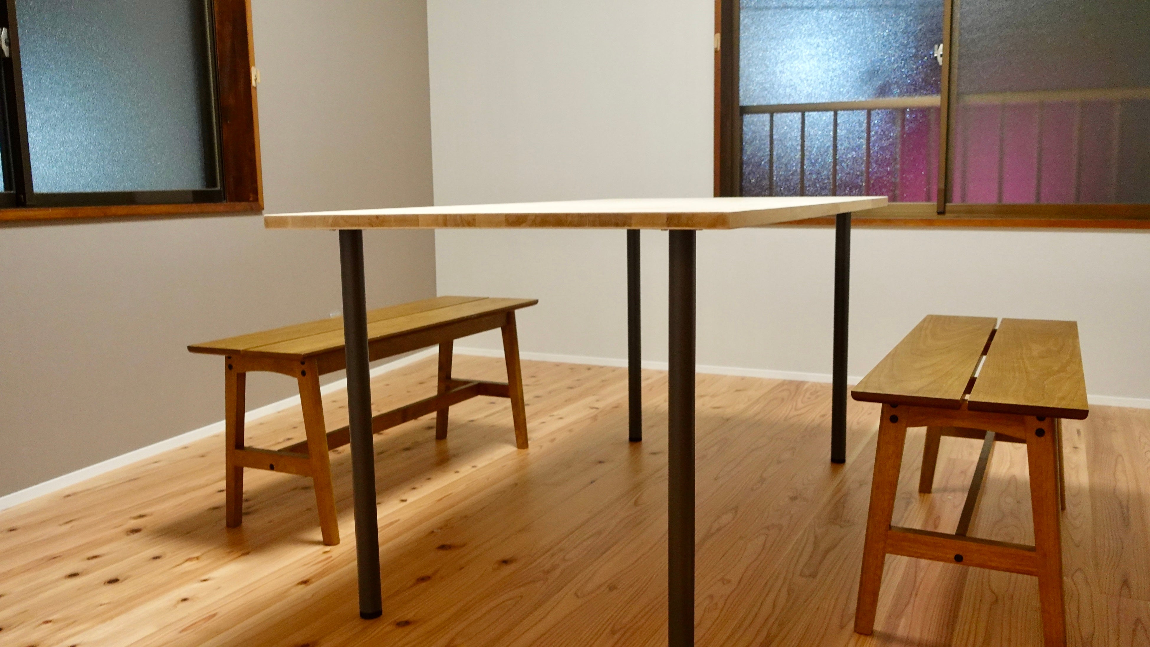 下の写真はワークショップの活用を想定した長テーブルと本棚、複合機です。