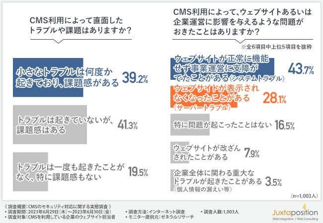 【企業のウェブサイト担当者に聞いた、CMSのセキュリティ対応実態】8割以上がCMS利用でトラブルが発生したことがあると回答!企業が抱えている課題とは