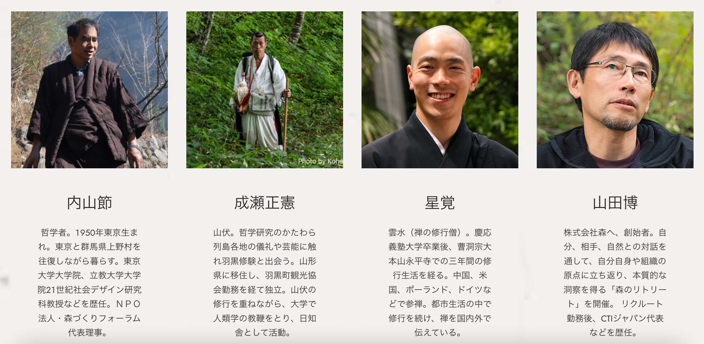 西洋文明の枠組みを批判的に捉え直し、日本・東洋の修行の道における直観的、統合的な探求に未来の在り方を求めていく。今年のプログラムでは、学問的・知的な理解だけでなく、身体的・直観的な智慧を養うことを目的に、禅寺の修行僧たちや羽黒の山伏たち、自然の在り方を極める哲学者などをゲストに招く。また、言語学者や心理学者、ウェルネス業界の起業家なども参画している。