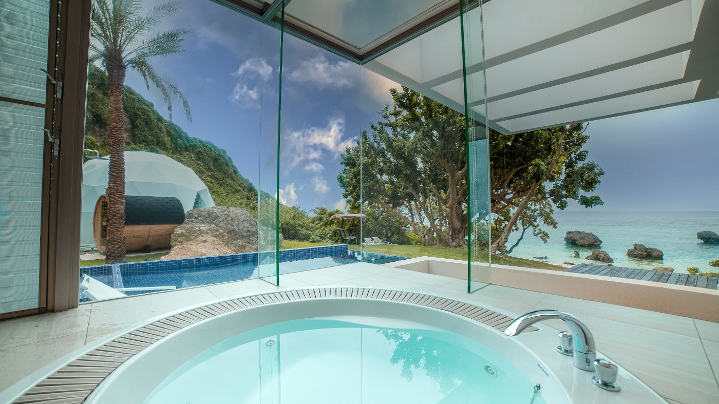 屋内ジャグジーと露天のジャグジー、バレルサウナ、インフィニティプール、ドームテント、ビーチサイドのガゼボなど、宮古島の自然を満喫出来る設備を整えております。