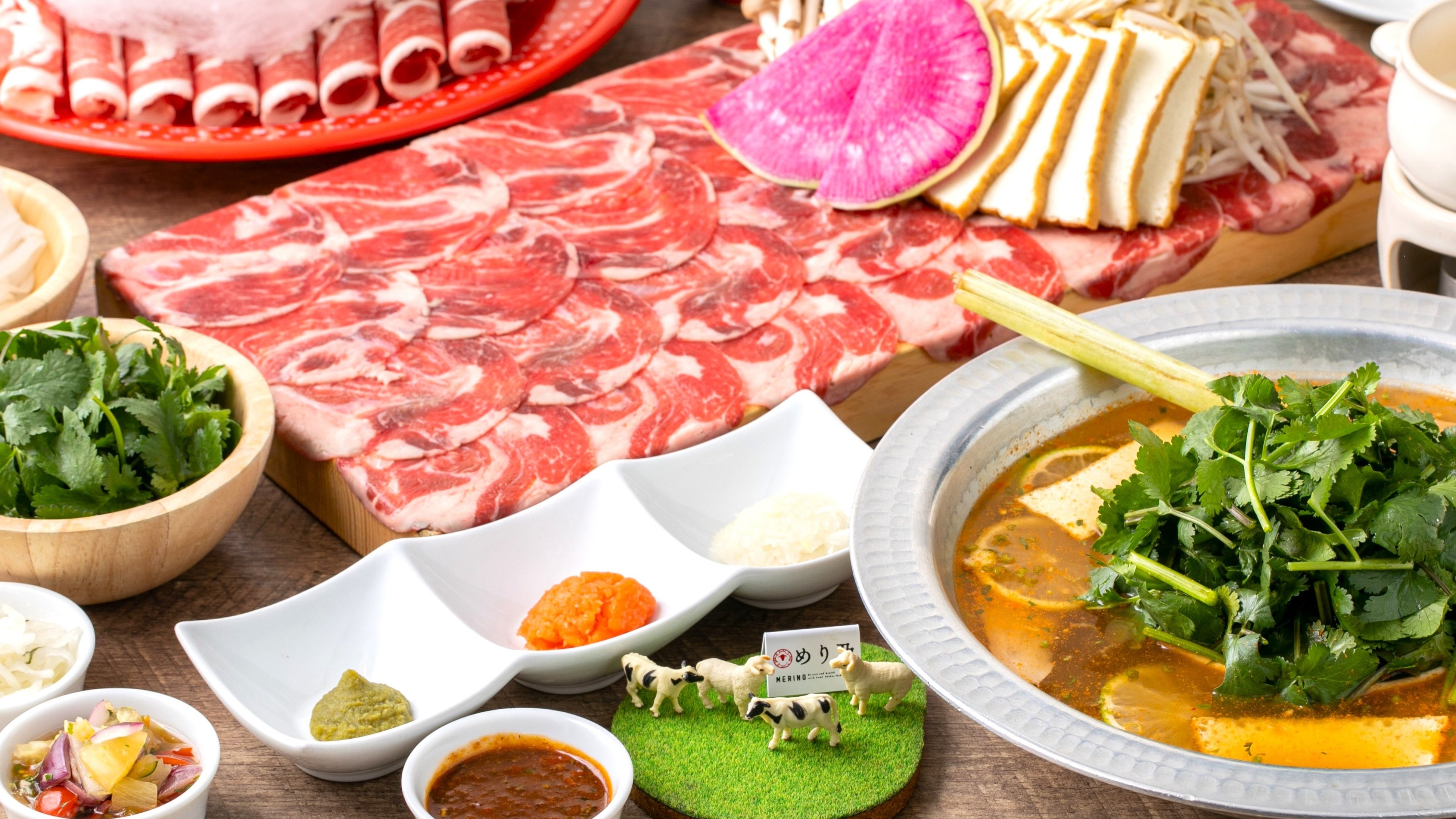 ①【めり郎】ラムしゃぶ食べ放題+Soft飲み放題付コース・・・通常4,158円⇒3,158円(税込)