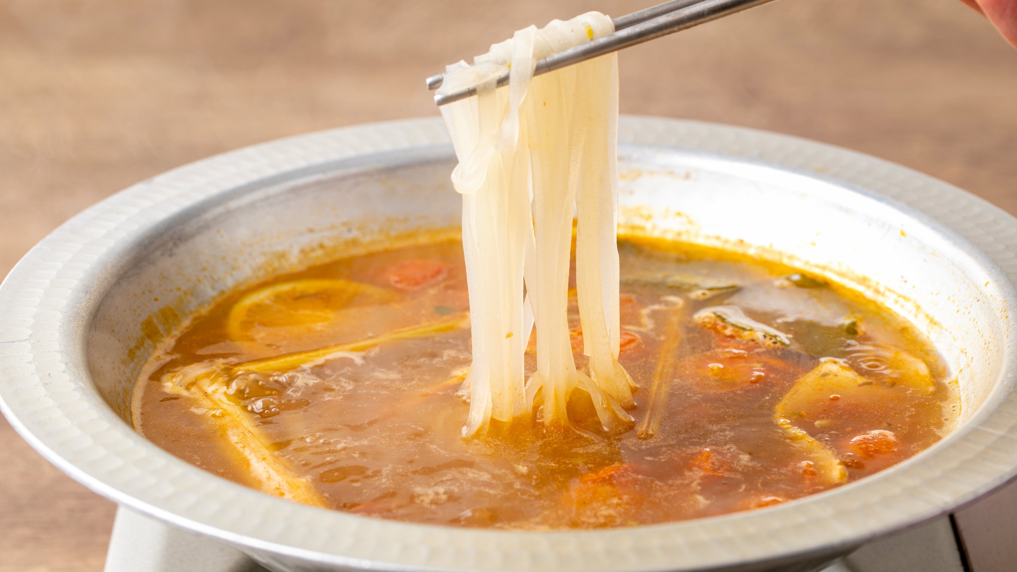 ■ヌードルSET(+880円)で〆まで楽しむ♪ラム肉の旨味がたっぷり入った濃厚トムヤムスープとヌードルは至極のおいしさ!■