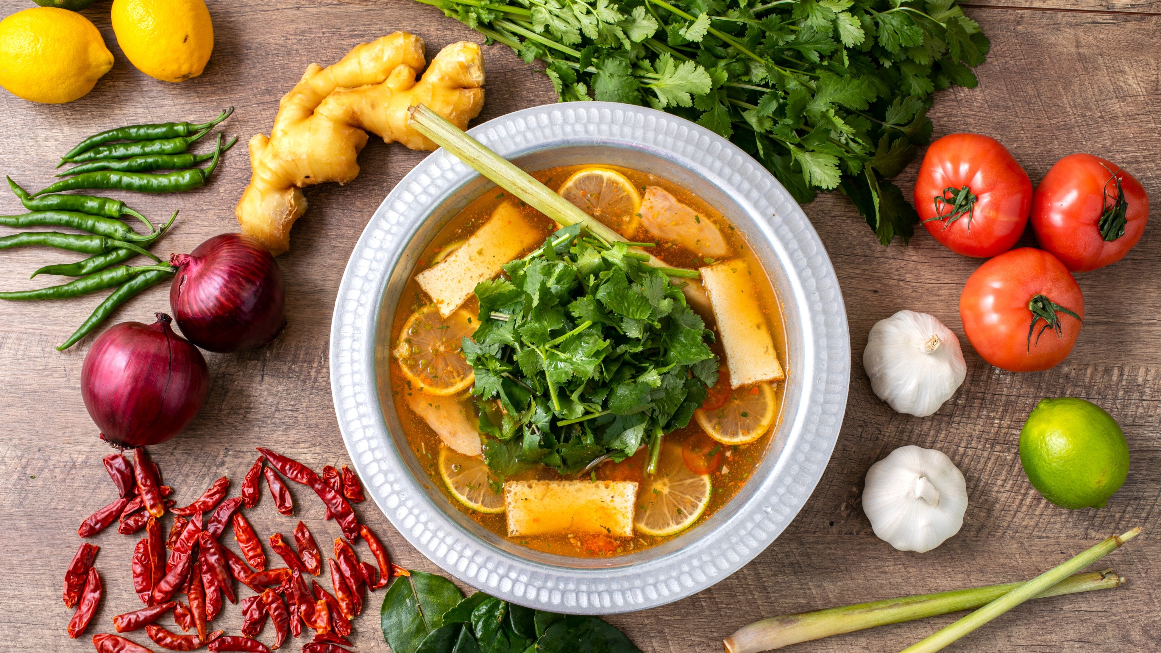タイ本場の材料を使用し、本格的な辛味と酸味を表現しました。さらに、隠し味に”エビ味噌”を使用することによって、コクと深みをプラスした旨味たっぷりスープに仕上げました。