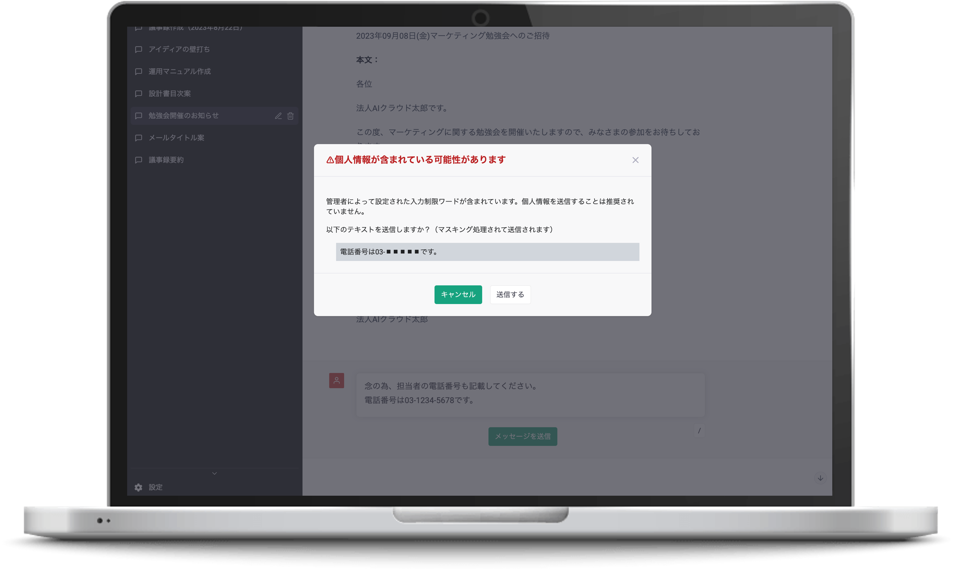 個人情報・機密情報の入力を制限・ブロックする機能を独自開発いたしました。