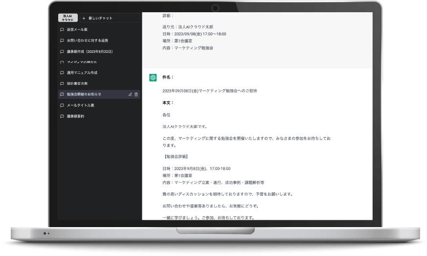 事業内容:法人AIクラウドの開発・提供、ChatGPT顧問サービス