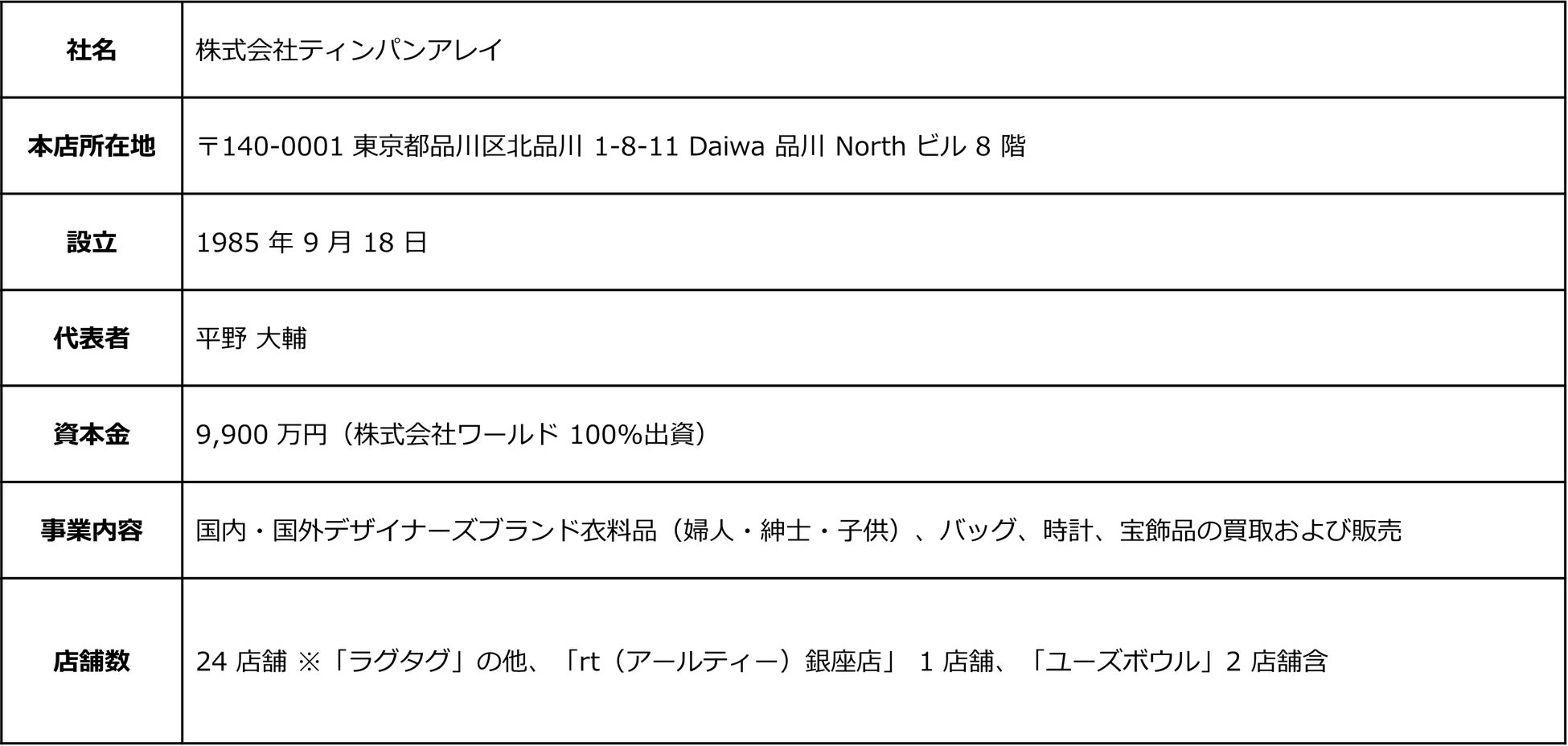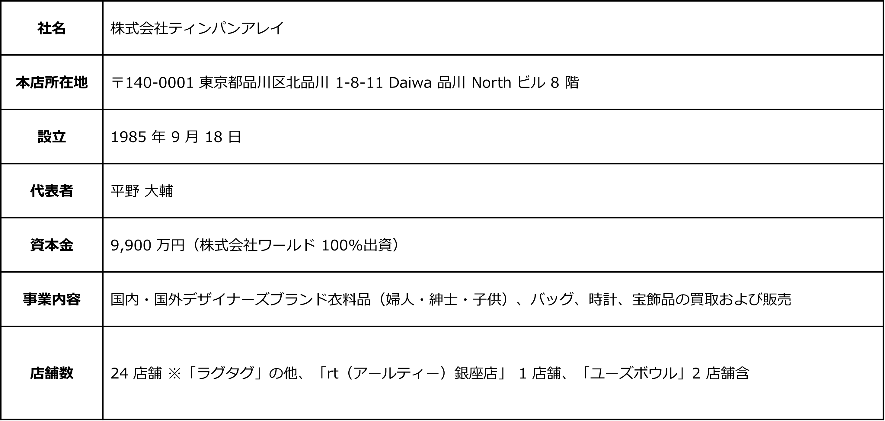 RAGTAGは、株式会社ティンパンアレイ(本社:東京都品川区、社長:平野 大輔)が運営するユーズドセレクトショップ。全国の主要都市に店舗を展開し、ユーズドファッション国内最大級のECサイトを運営。創業以来35年以上、ファッションを愛するお客さまにご利用いただき高い価値でのお買取りを実現しています。