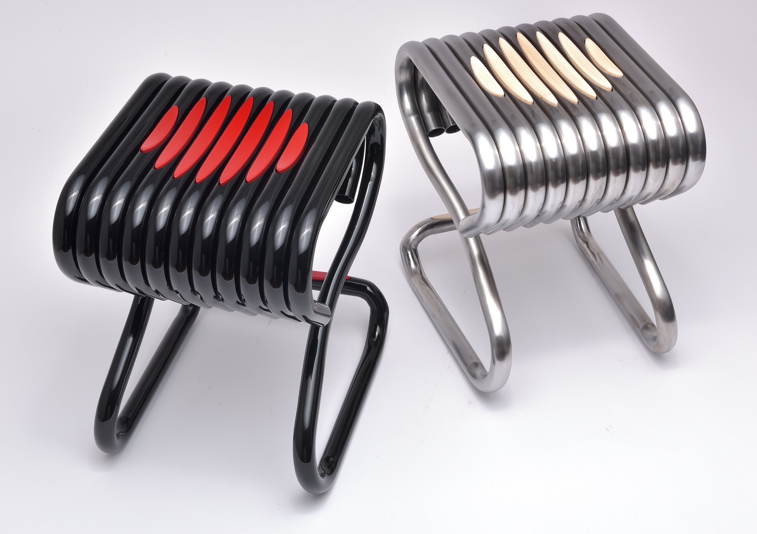 [過去受賞作品] 左:パイプ椅子「The Re Birth」、右:宅配ボックス「Delivery Box TOUROU」