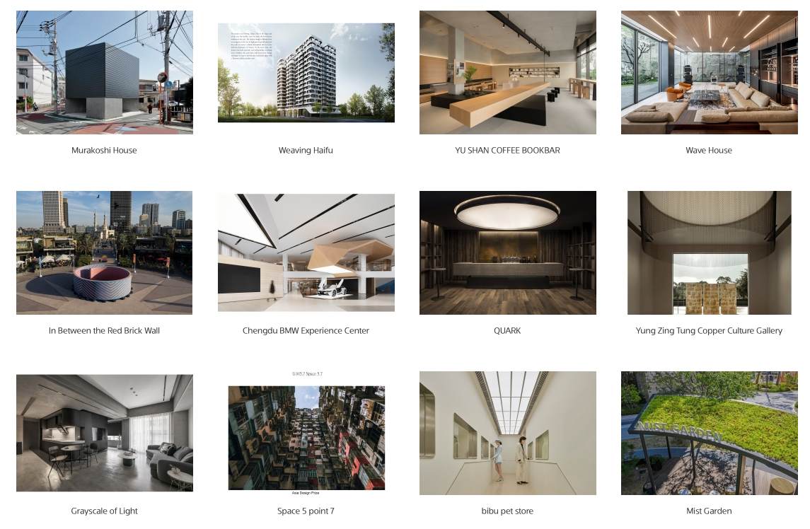 ・室内デザイン、展示空間デザイン、公共空間、都市再生プロジェクト、公園、広場、道路および橋梁デザイン、リゾートデザイン、E-Commerce及び販売空間のデザイン、オフィス空間デザイン、医療施設および病院のデザイン、風景デザイン、その他(自由提出)