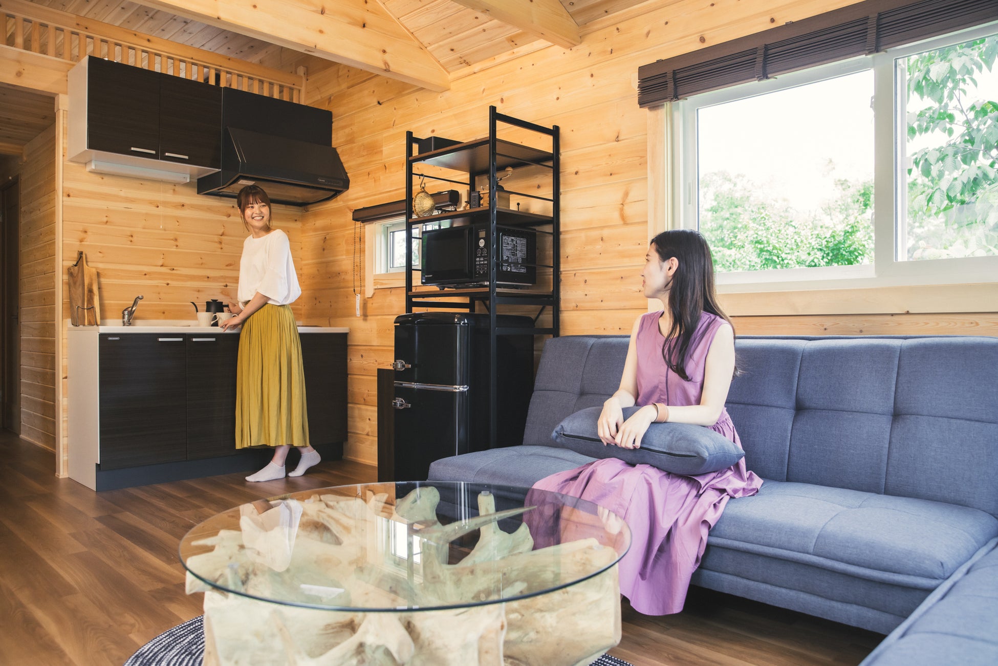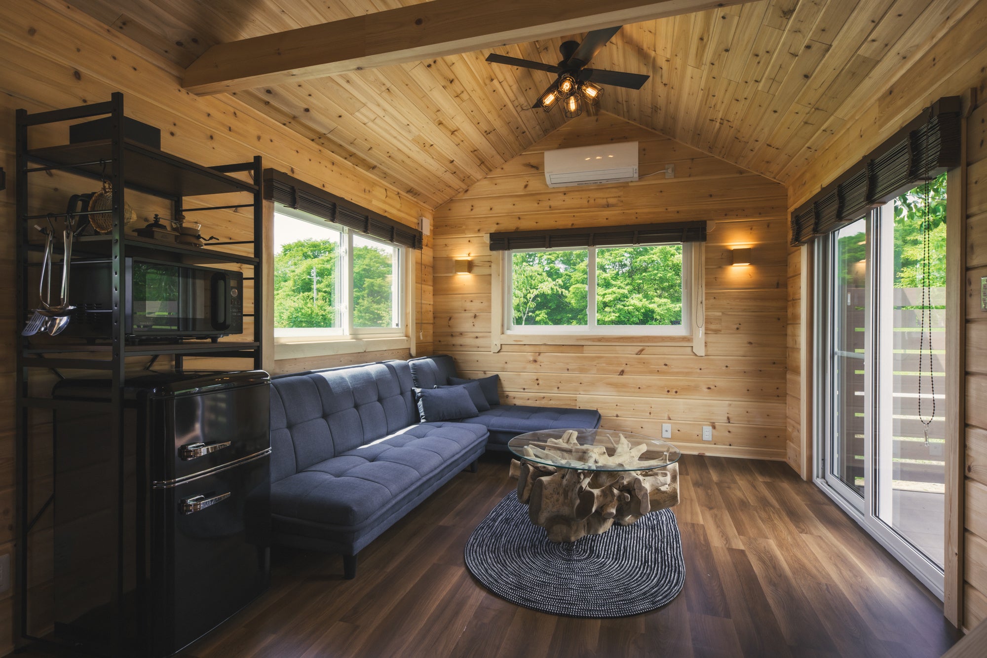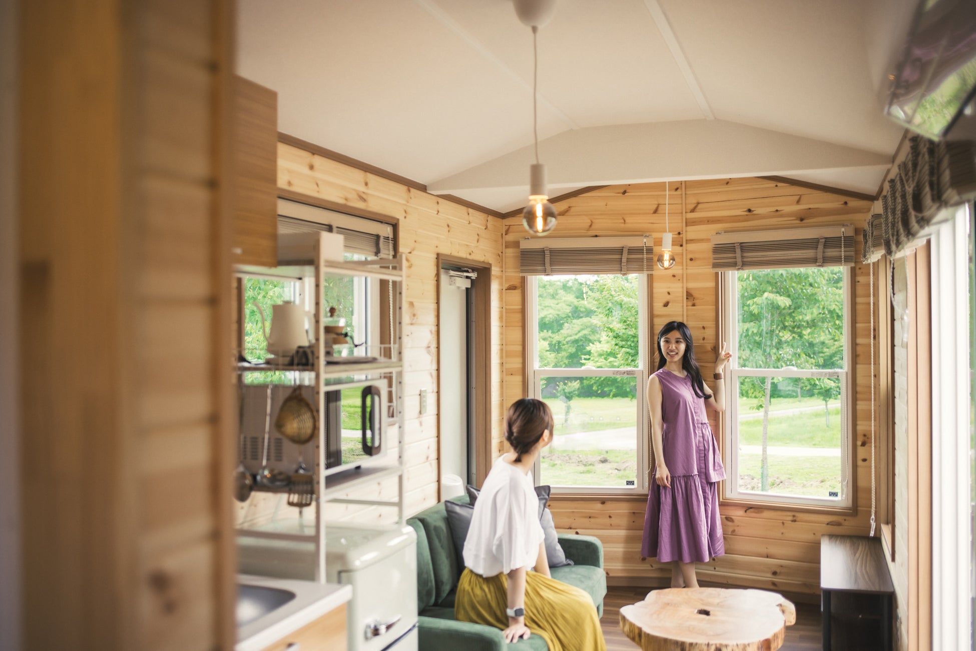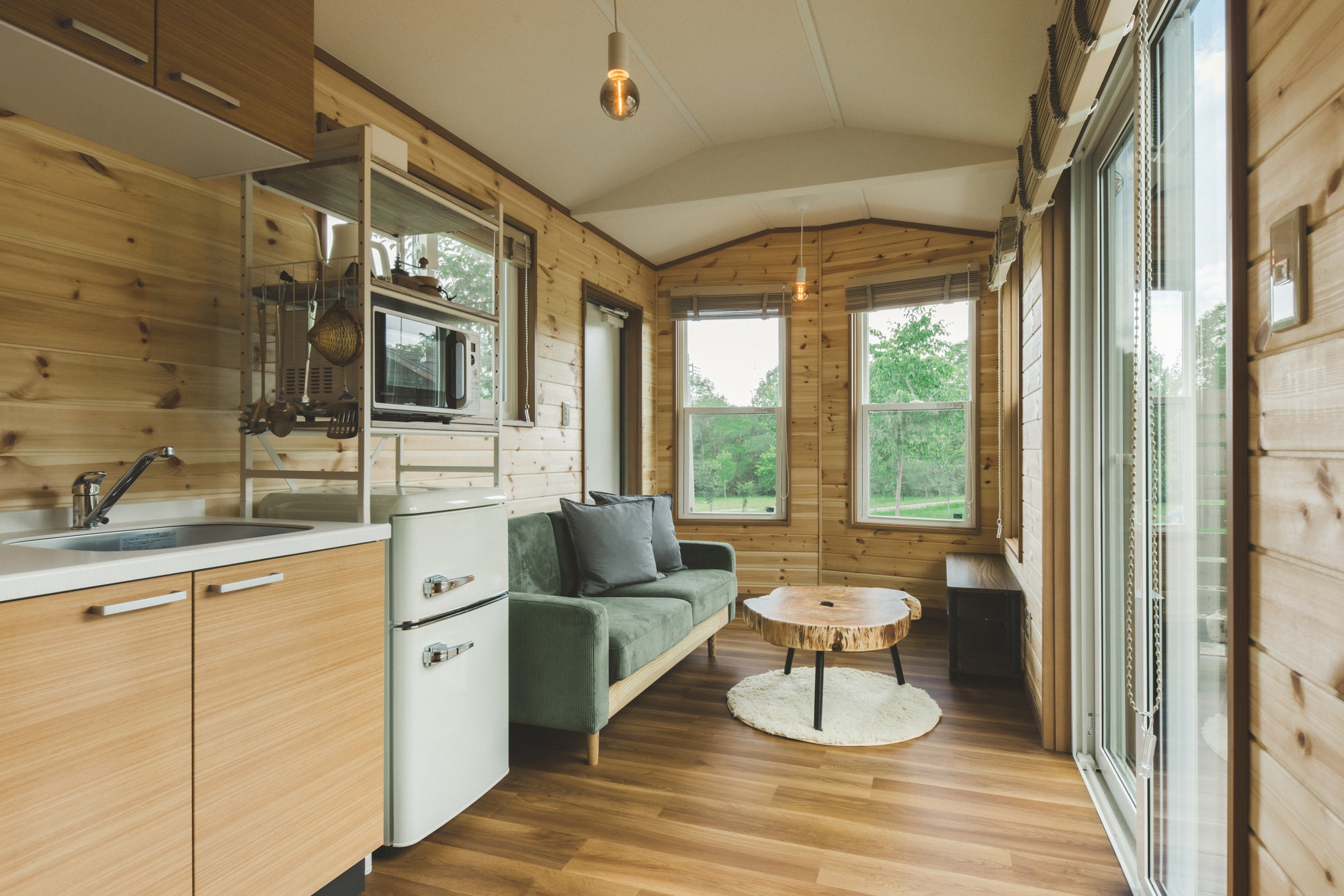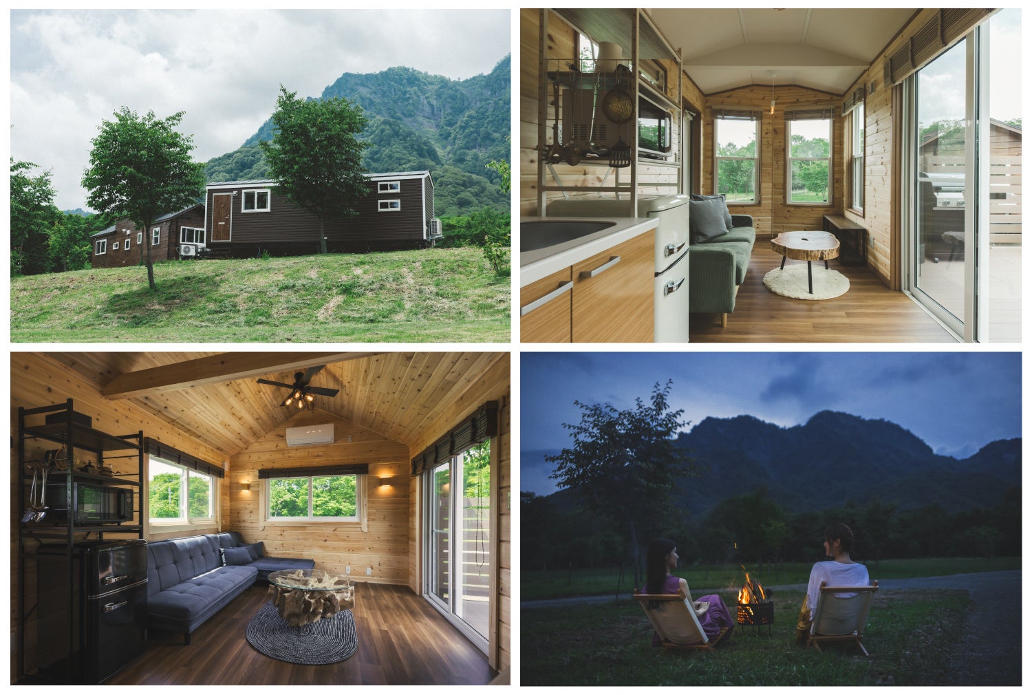 トレーラーハウスは長さ11m、9mの2種類。11m「GRAN SUITE」、9m「PANORAMA TWIN」の全4棟を7月22日(土)一般オープンします。 大自然に溶け込むようなゆったりとした寛ぎの時間を是非体感してください。
