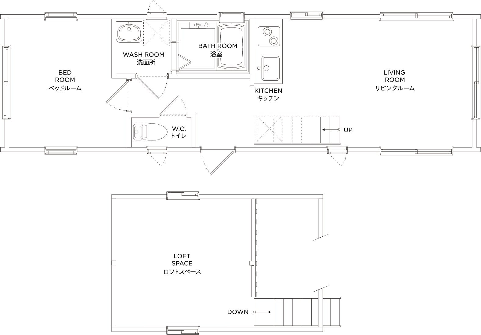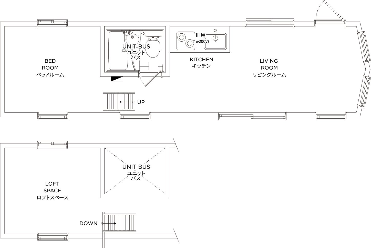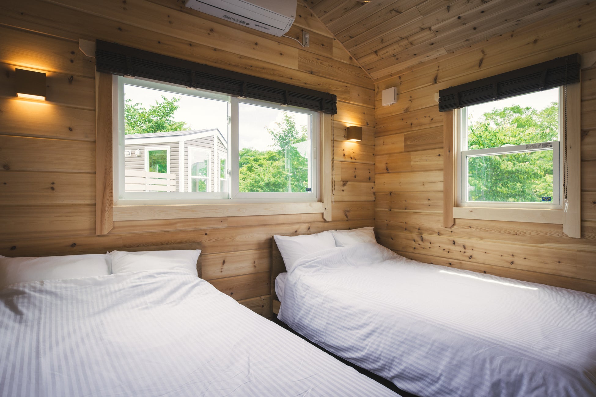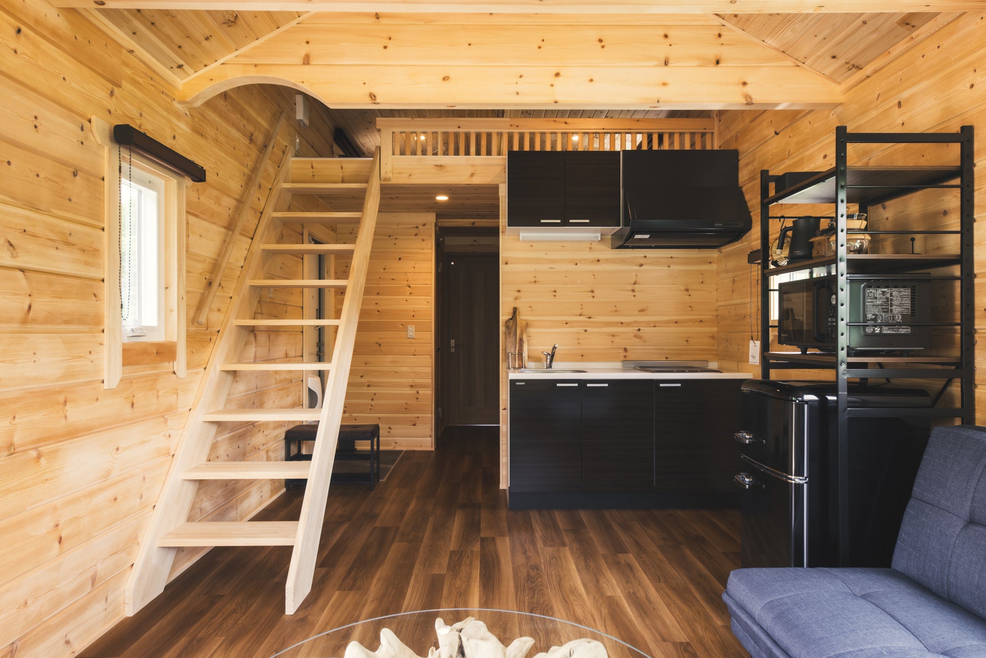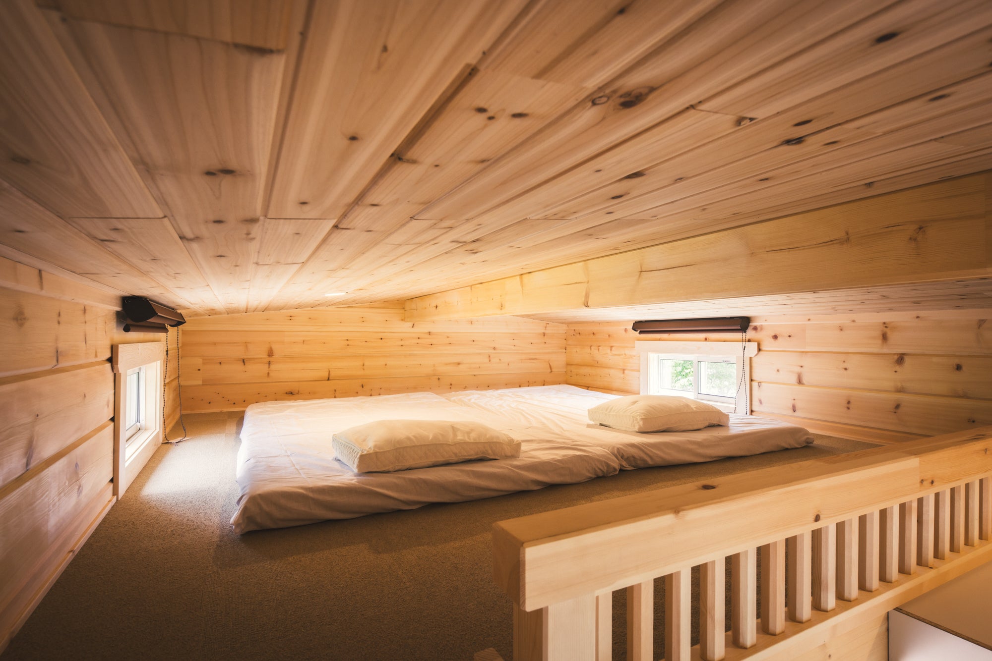 コンパクトな設計の「PANORAMA TWIN」は定員は2名(最大4名まで可)で3部屋ご用意しており、友人同士、カップルにおすすめ。空間を最大限に活かしたシンプルな内装、ベッドスペースは2段のロフトになっており、秘密基地のようなワクワクする空間です。