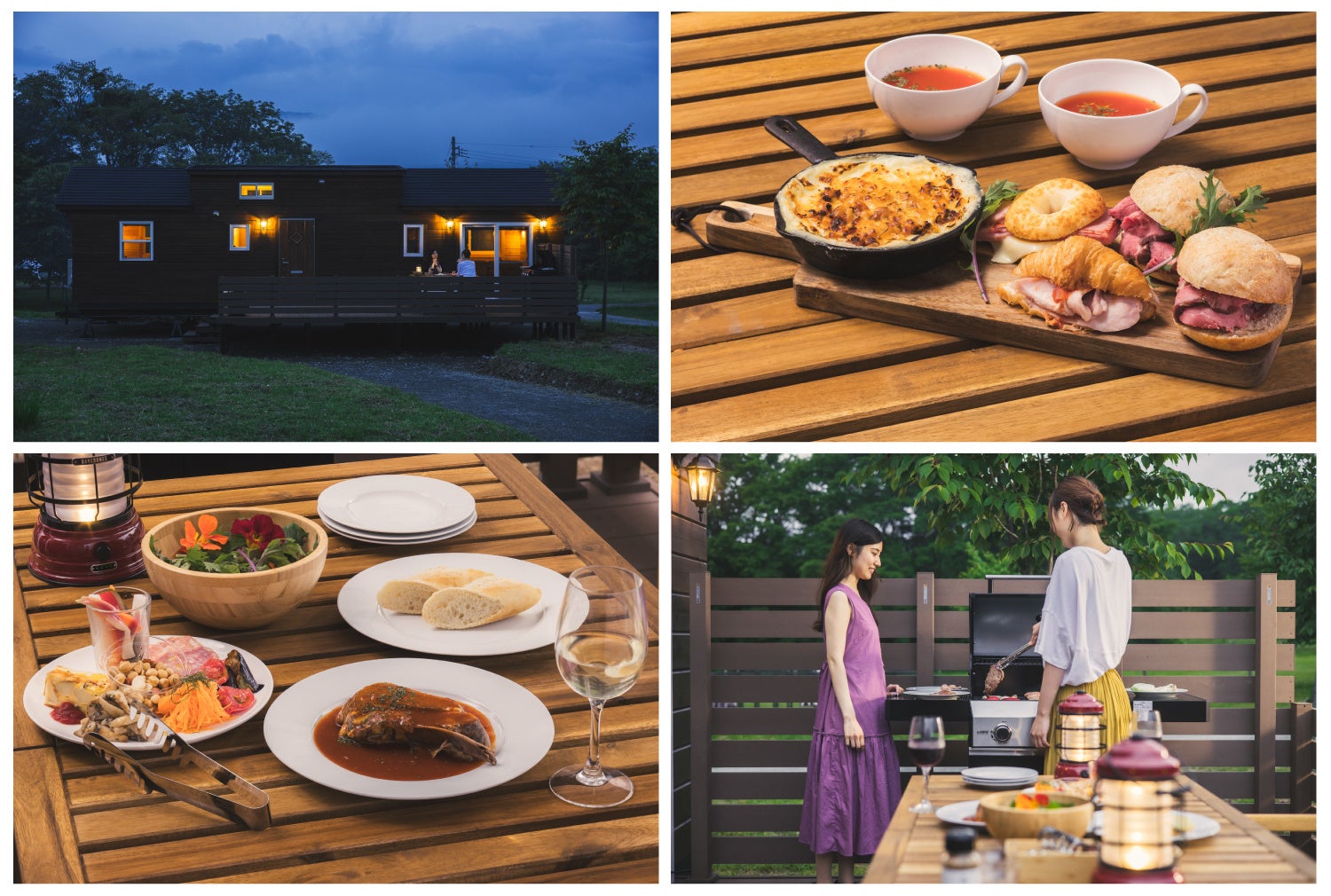 食事付きプランではセミセルフの夕食、朝食をご用意。それぞれに完備した専用コンロで簡単な調理をしていただくことで時間を気にせず出来立ての料理を味わっていただけます。