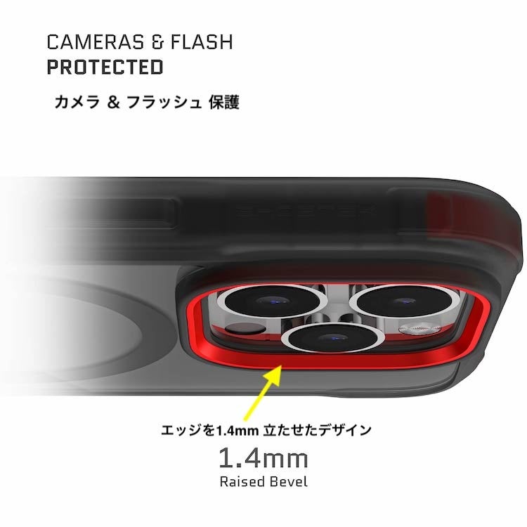 またフレームは画面側もカメラレンズ側も、端末よりも少し高めに設計されており、端末が直接接地しないような設計となっています。