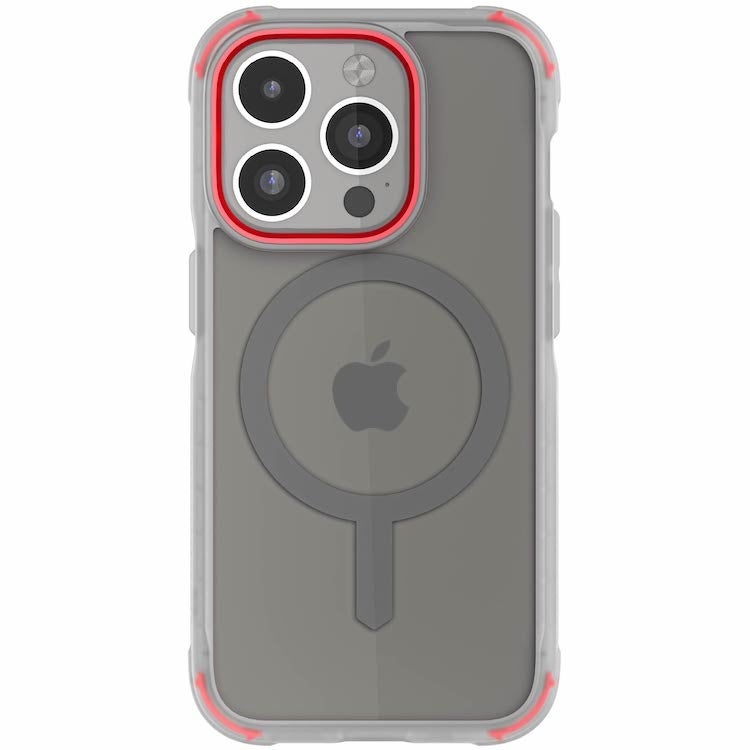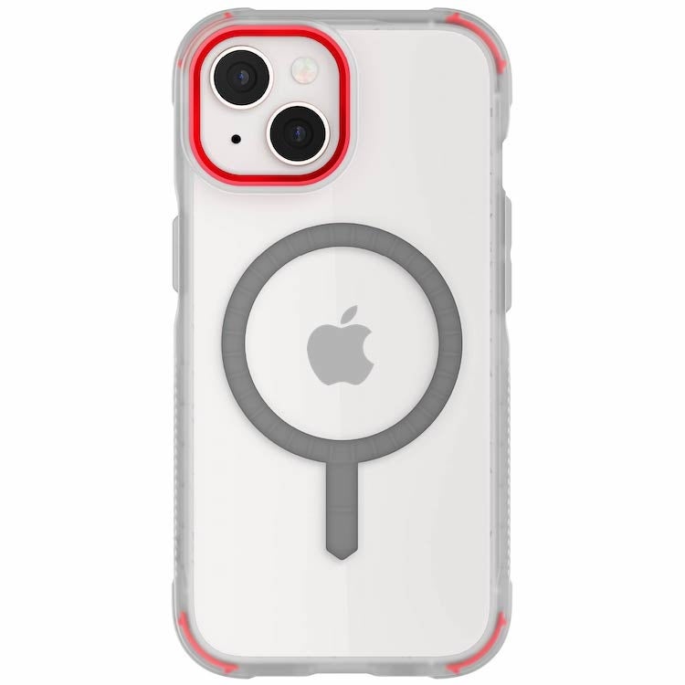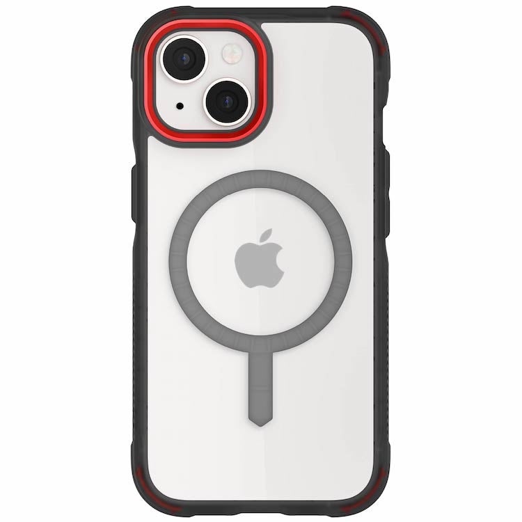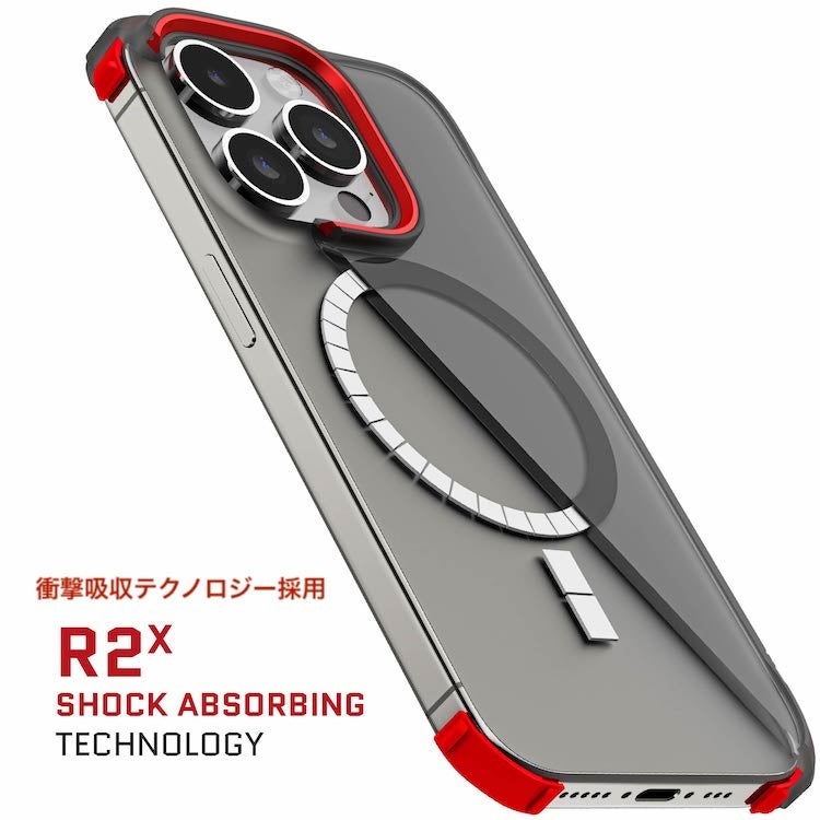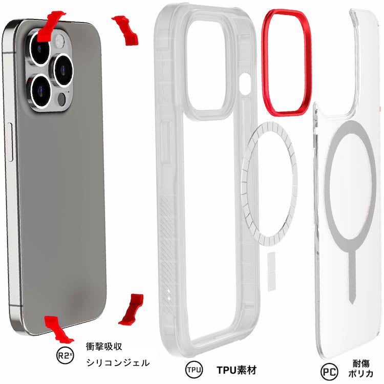 優れた耐衝撃性能を持つシンプルなクリアケースに、MagSafeに対応するリングを埋め込んだミニマルデザイン