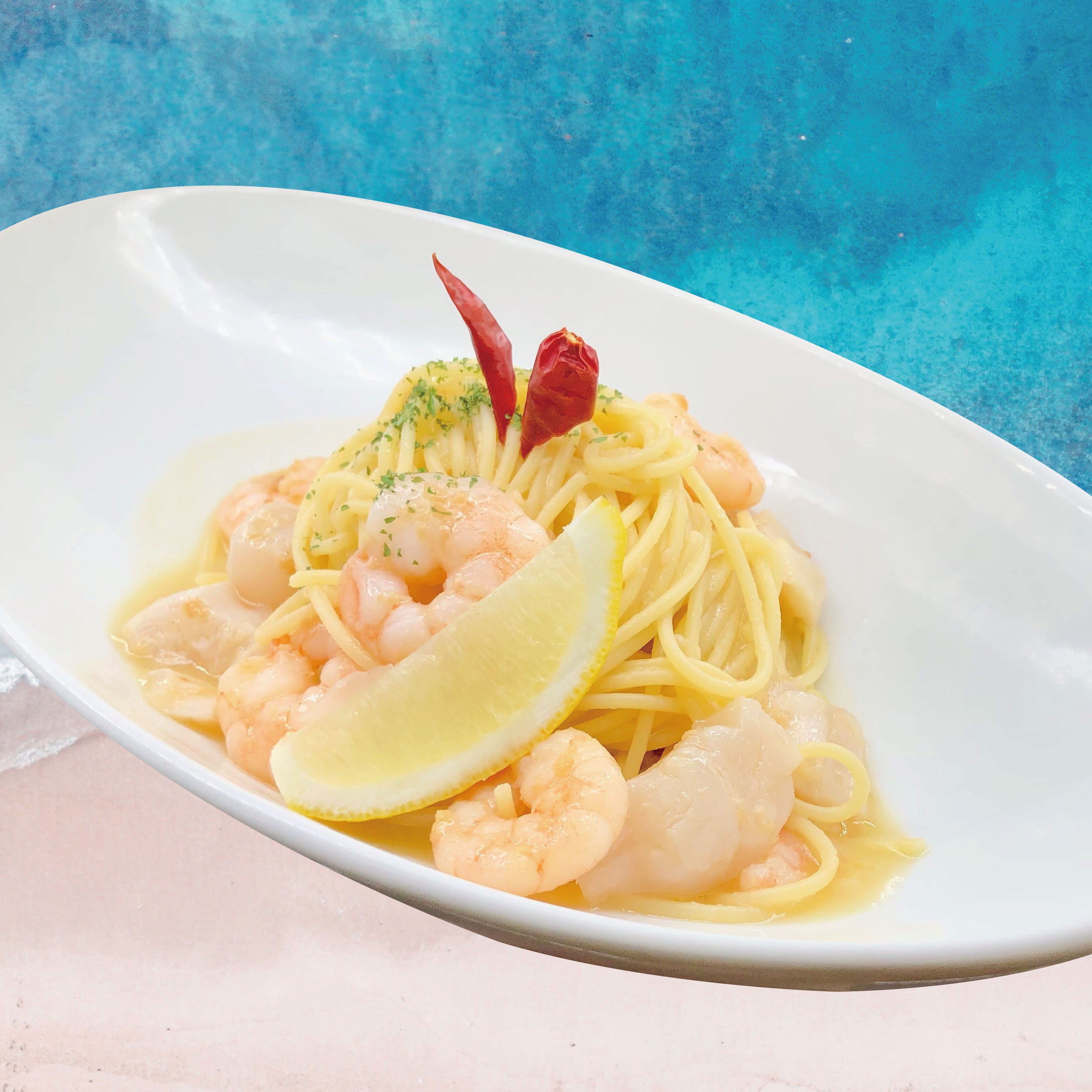 ◆北海道産ホタテと海老の塩レモンガーリックパスタ