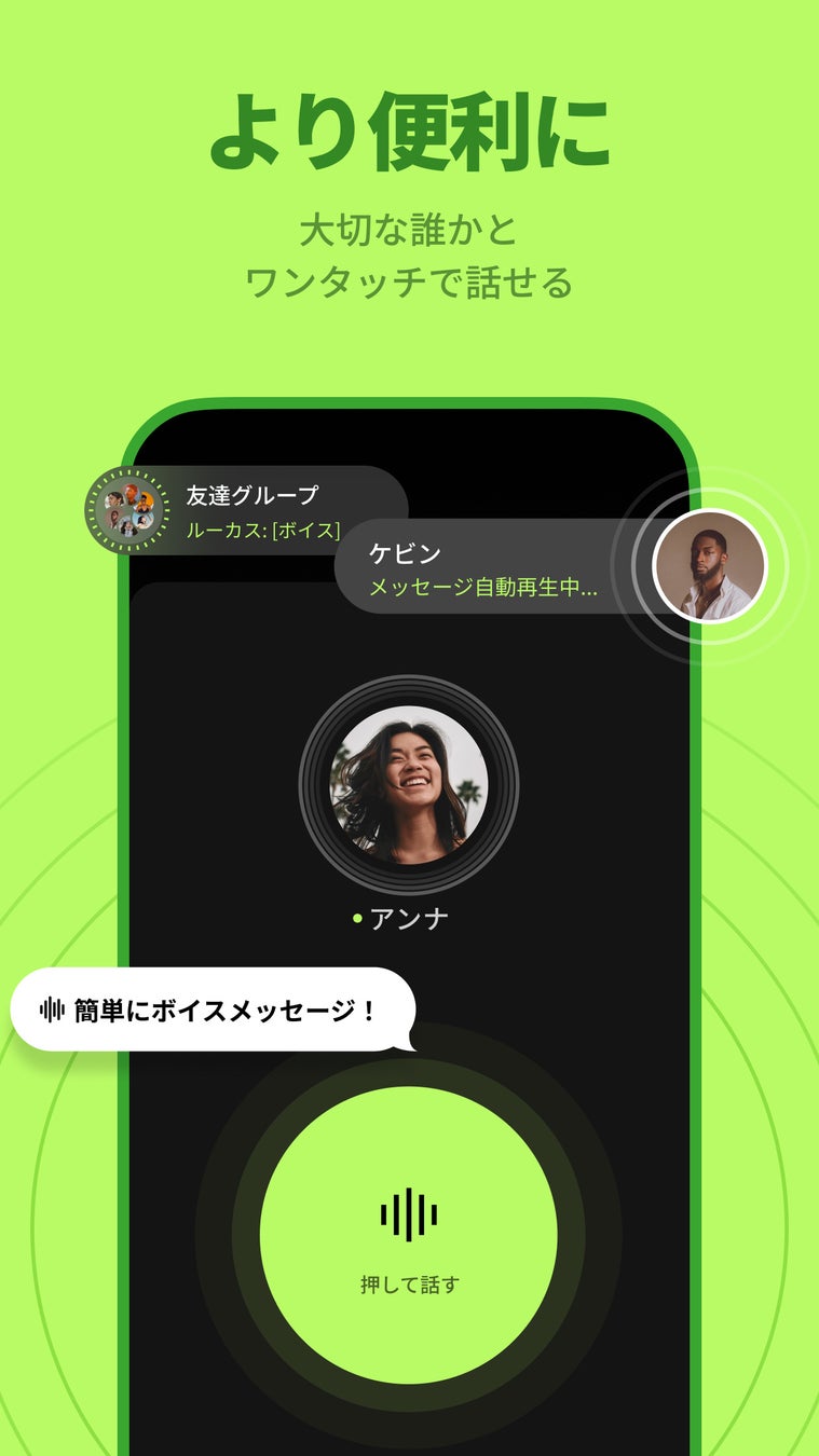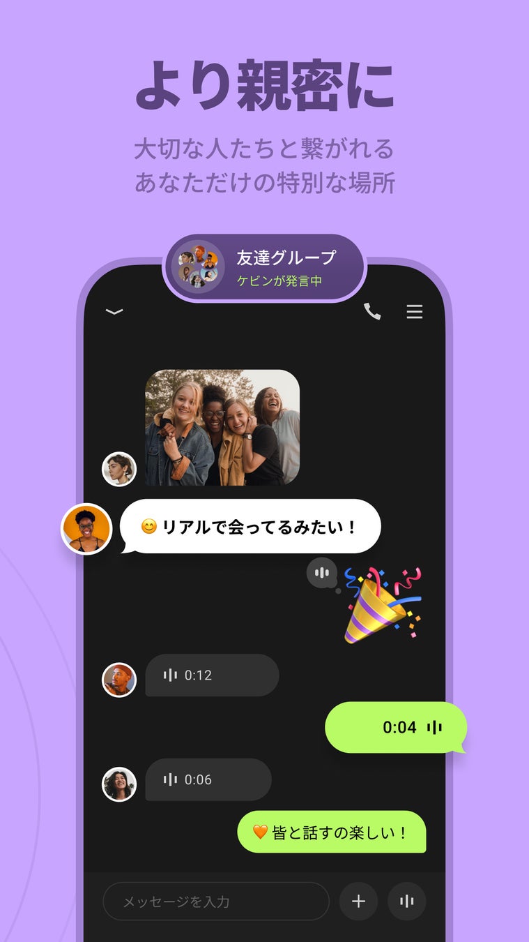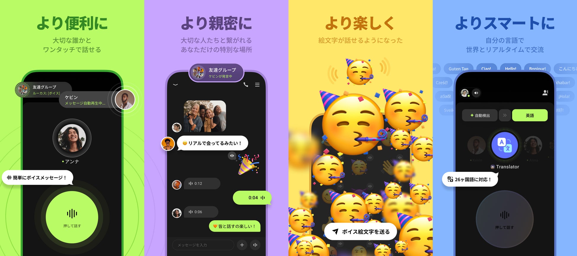 大切な人や仲間と声で繋がることができる、今までにはない新しい革新的な音声アプリ。