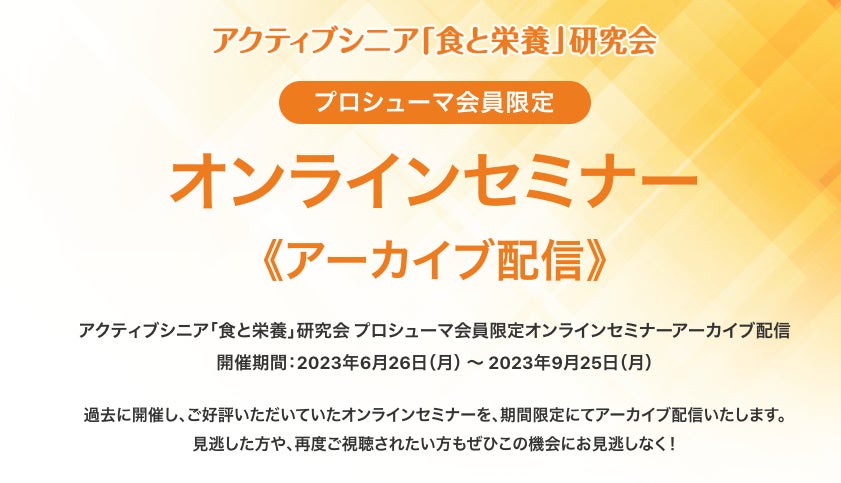 アクティブシニア「食と栄養」研究会 プロシューマ会員限定オンラインセミナー《期間限定アーカイブ配信》 食・栄養指導で役立つ必見セミナー13 選!