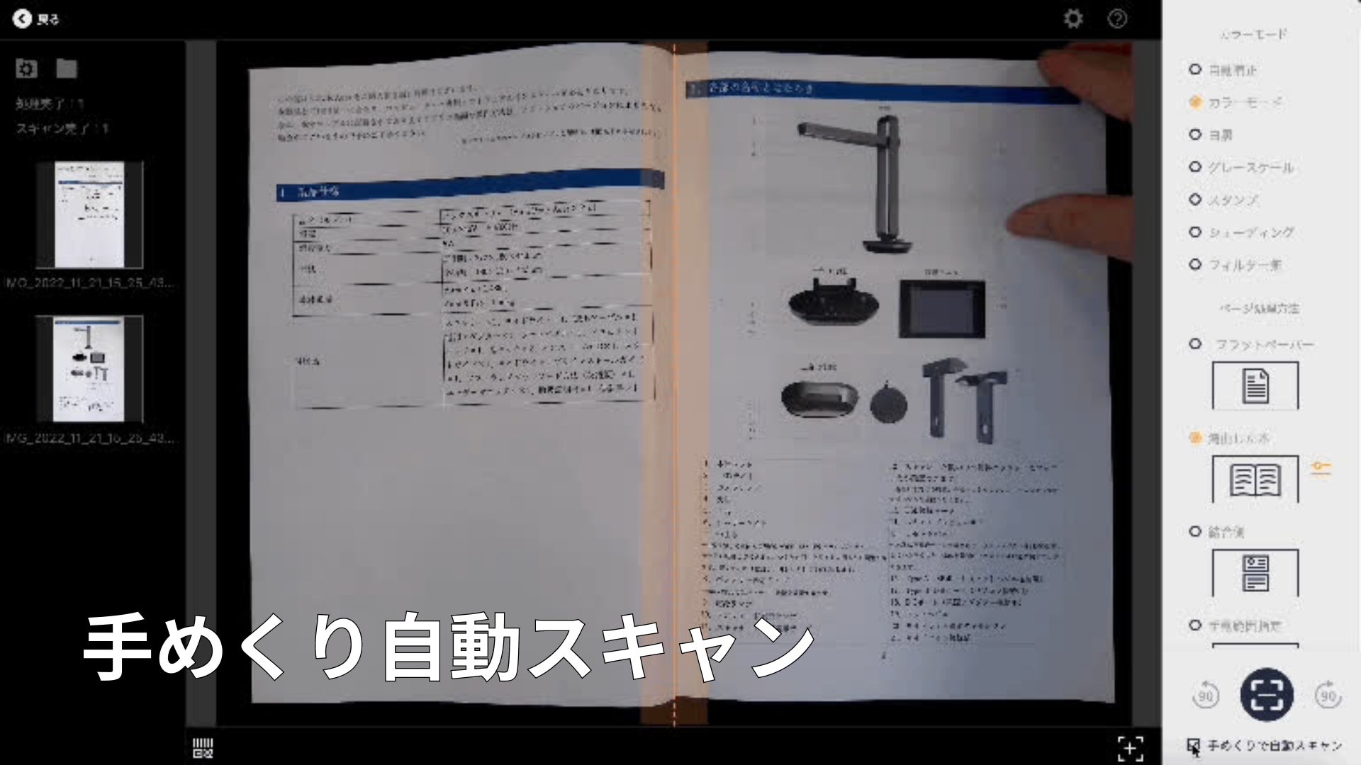 ・自動めくり検出・・・手めくりを自動で検知してスキャンする機能