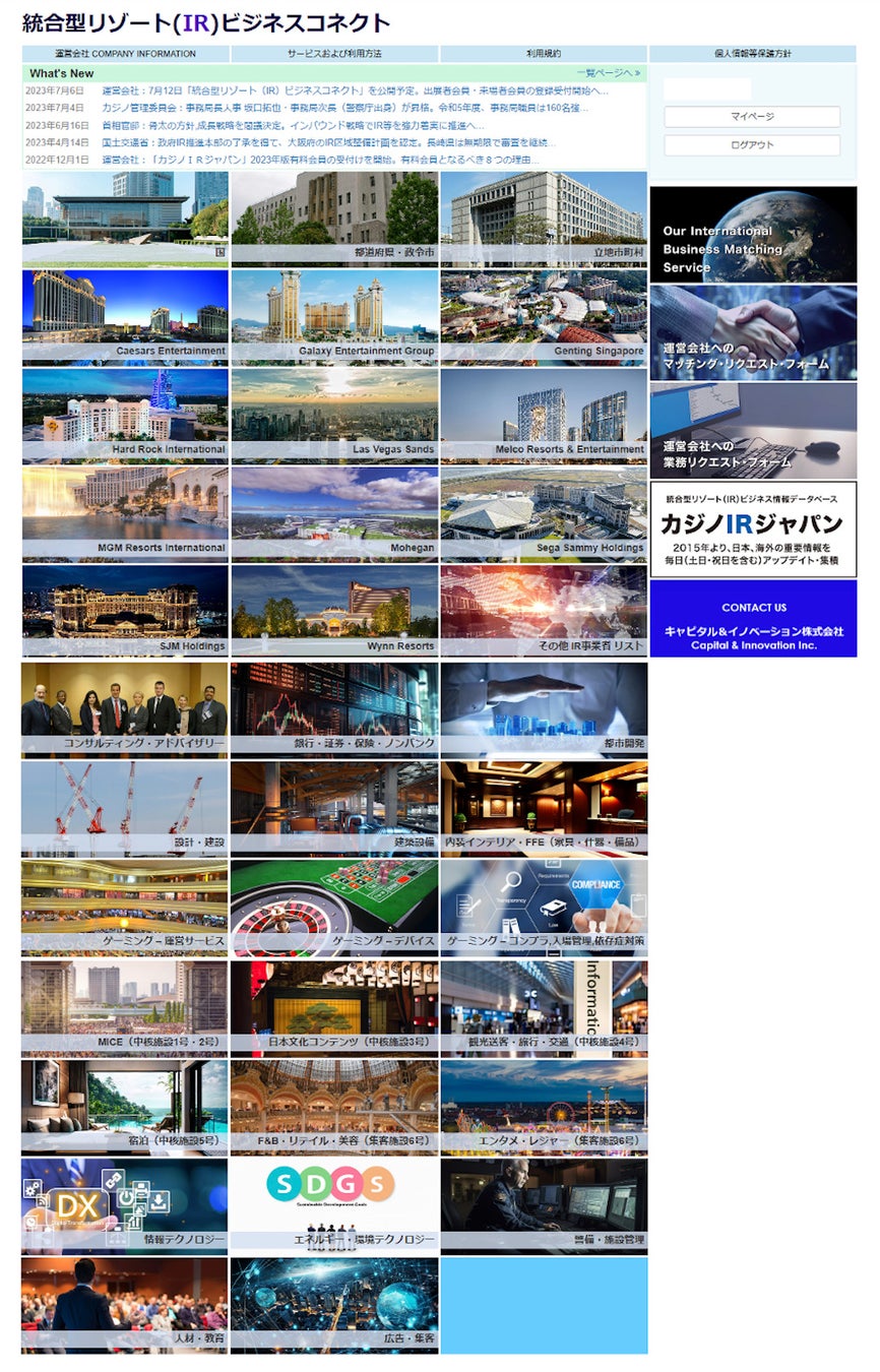 キャピタル&イノベーション株式会社(本社:東京都千代田区、代表取締役:小池隆由)は、7月12日、ビジネスマッチング・プラットフォーム「統合型リゾート(IR)ビジネスコネクト」(https://ir-bizconnect.com/)を公開しました。