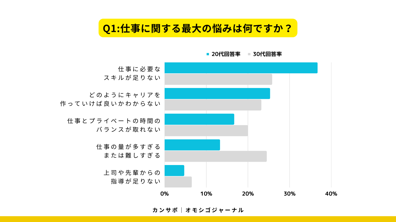 また、「どのようにキャリアを作っていけば良いかわからない」という悩みも20代(25.3%)と30代(23.2%)が抱えていました。これは、どちらの年代も自分のキャリアパスに対する不安や課題を感じていることがうかがわれます。