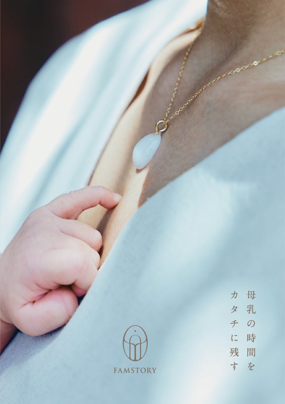 FAMSTORYはひとりひとりの「母乳」をジュエリーというカタチに残すオーダーメイドジュエリーブランド。家族の大切な「母乳」という奇跡を、見て・触れることのできる一生の思い出にします。