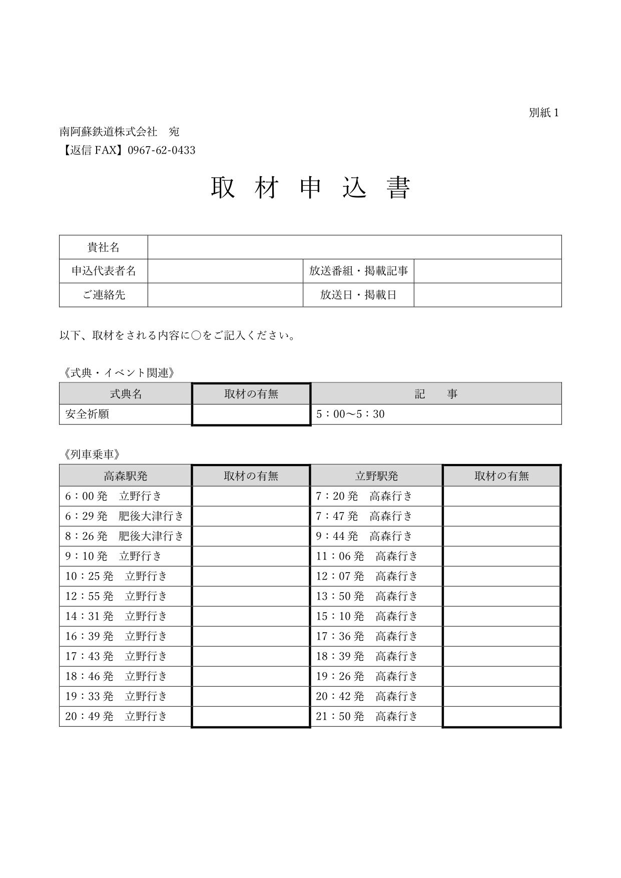 ・高森駅12:20発の式典列車に乗車しての取材は出来ませんのでご了承下さい。