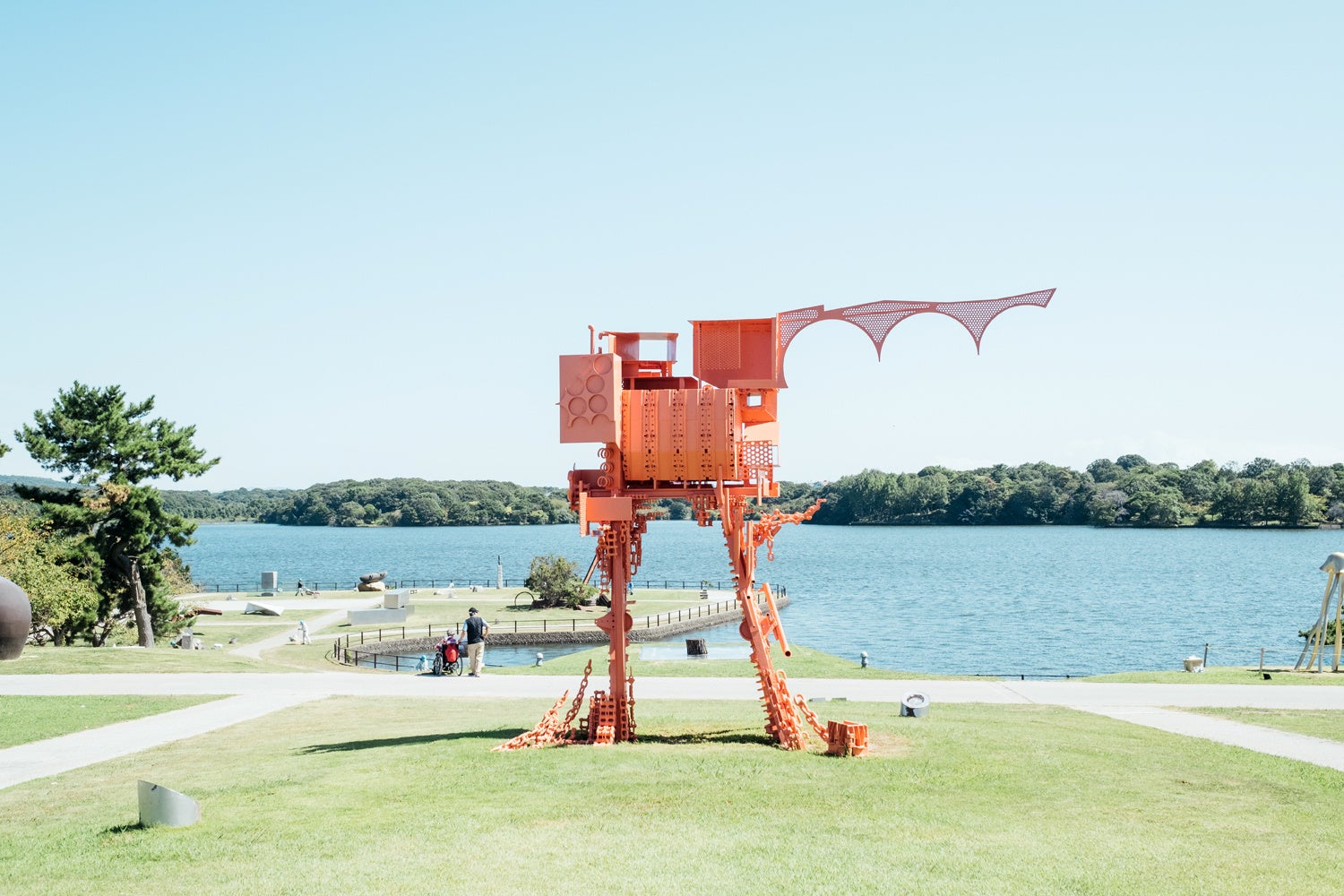 「UBEビエンナーレ(現代日本彫刻展)」は、戦後のまちの美化と心の豊かさを求める市民運動をきっかけとして、1961年から2年に一度の開催を続ける世界で最も歴史ある野外彫刻の国際コンクールです。国内外の応募の中から選ばれた15点の野外彫刻が、広大な湖と豊かな緑に囲まれたUBEビエンナーレ彫刻の丘を彩ります。展覧会終了後、上位受賞作品は宇部市のコレクションとして市内の公共空間に移設されます。市内には現在、200点を超える野外彫刻が常設展示されています。