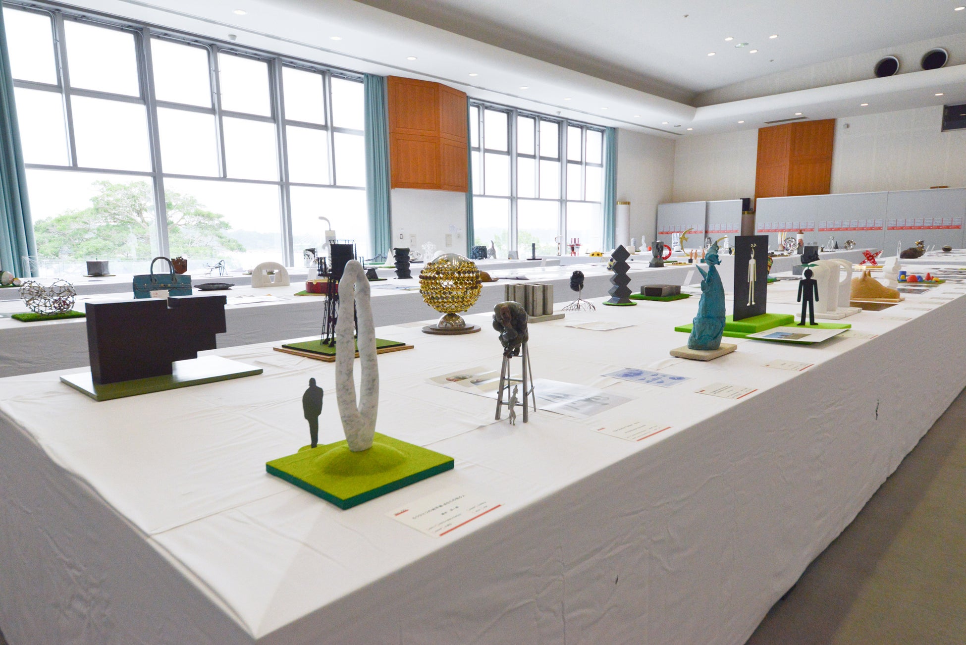 応募された野外彫刻模型が会場に並ぶ様子は圧巻です。ひとつひとつの作品に夢があるので、10倍サイズの野外彫刻になった姿を想像しながら、お楽しみいただけると嬉しいです。