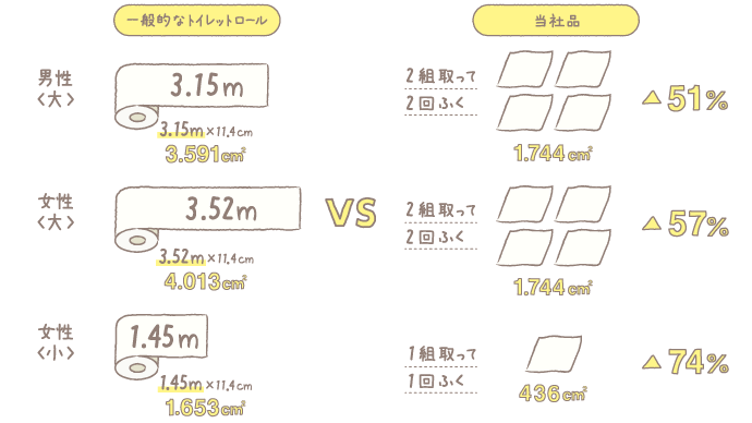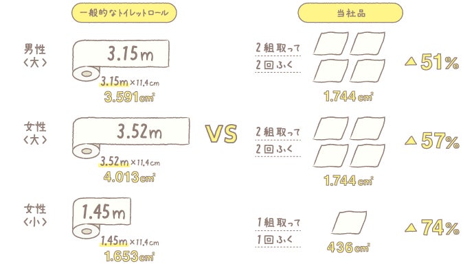 ためトイレに流れる(水にほぐれる)紙質を担保しながらお肌に触れるため「やわらかさ」を追求しました。