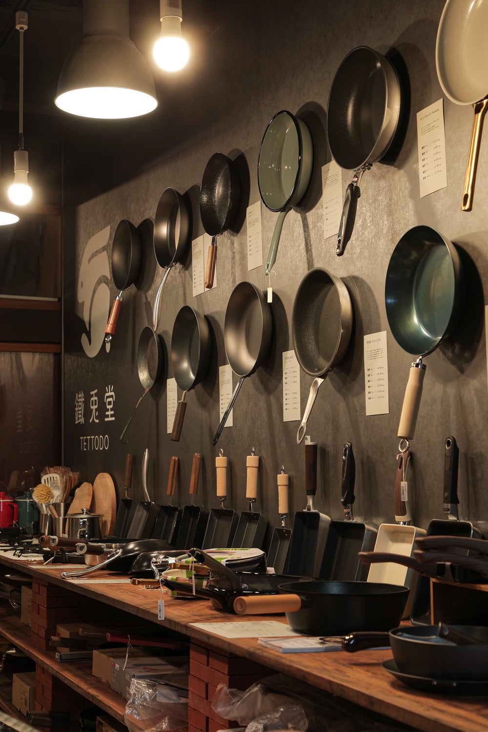 インターネット通販が主流になりつつありますが、フライパンは実際に持った時に感じる重さやハンドルの握りやすさはネット理解するのは難しく、返品サービスなどはとても手間がかかります。やっぱりリアル店舗で持ち比べてみるのが早くて確実ですよね?「フライパン専門店の鐵兎堂-TETTODO-」では、フライパンが欲しい人のために国内外のいろんなメーカーから集めた100種類以上のフライパンを持ち比べできます。