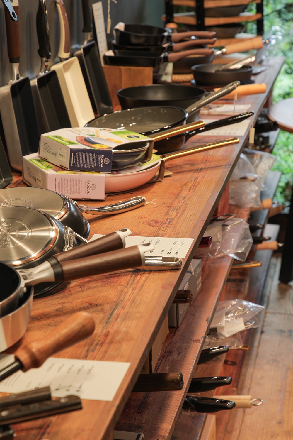さまざまなメーカーから集めたフライパンは100種類以上。使ってみて吟味できるお試しフライパンもご用意。自分にあったフライパンが見つけられるここだけ唯一の専門店がオープンしました。