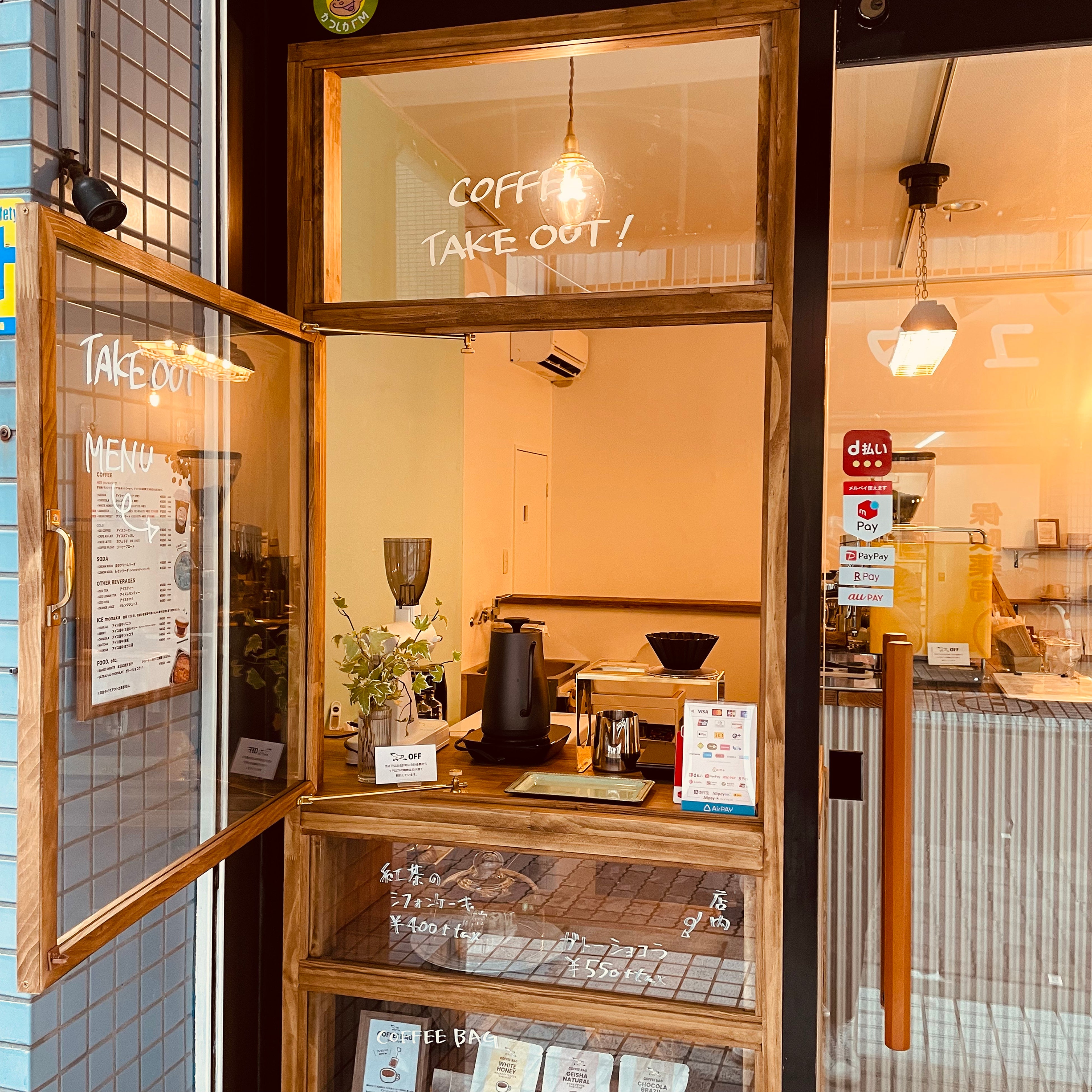 店内の座席数は8席。サッと購入したい場合はテイクアウト窓口で。ドリンク以外のメニューもテイクアウトできます。