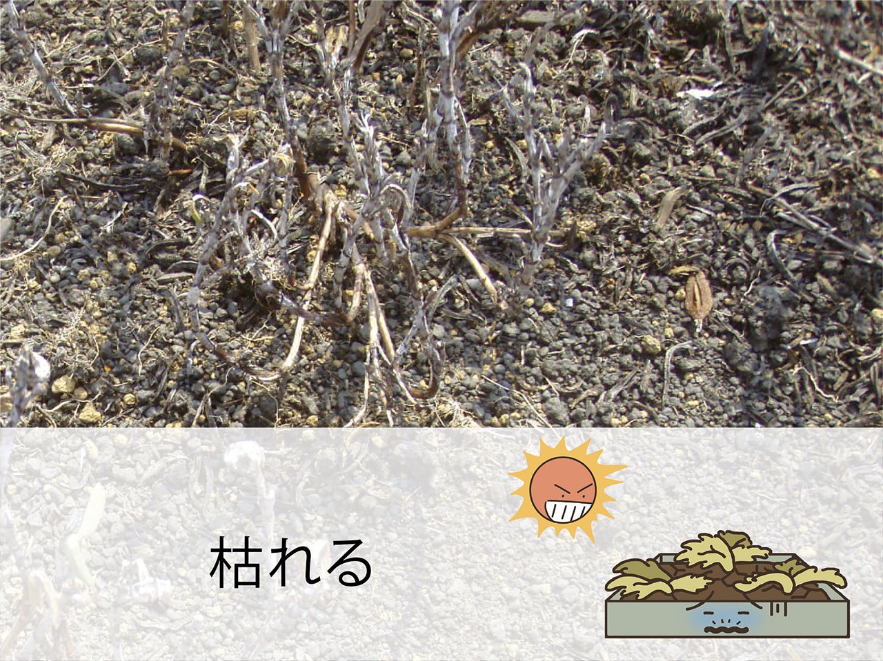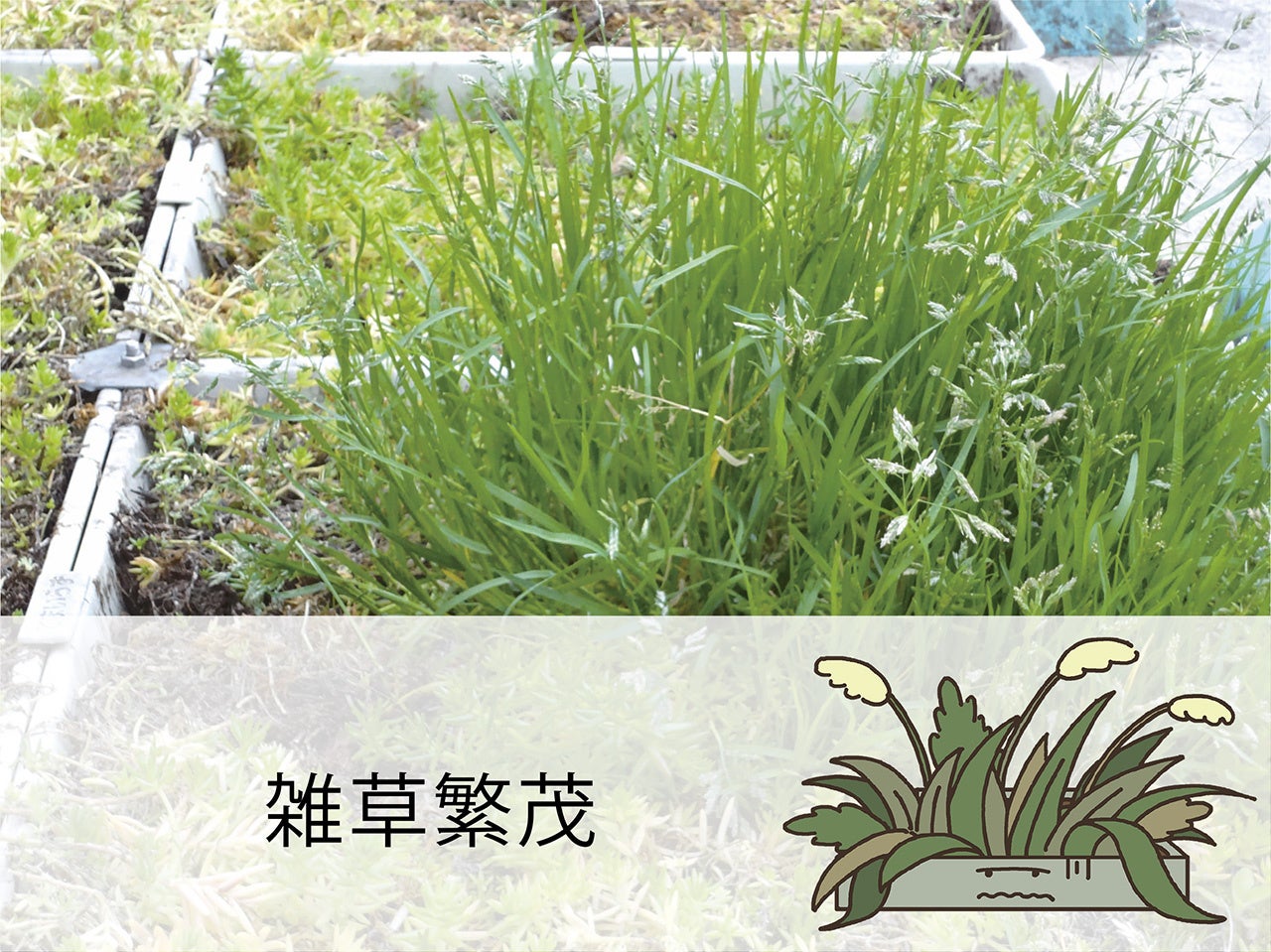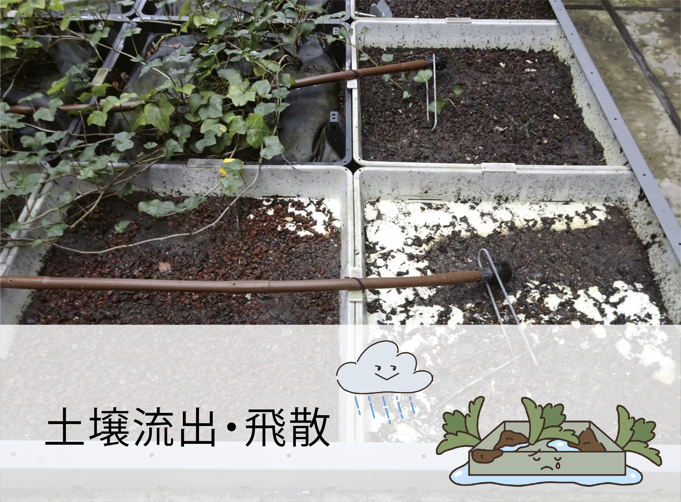 こうした現代の日本の厳しい自然環境を考慮せずに屋上緑化システムを導入して適切なメンテナンスを怠ると、「枯れる」「雑草繁茂」「土壌流出・飛散」が発生し、数年も経たずして屋上緑化が役目を果たさなくなる事例が多々存在します。