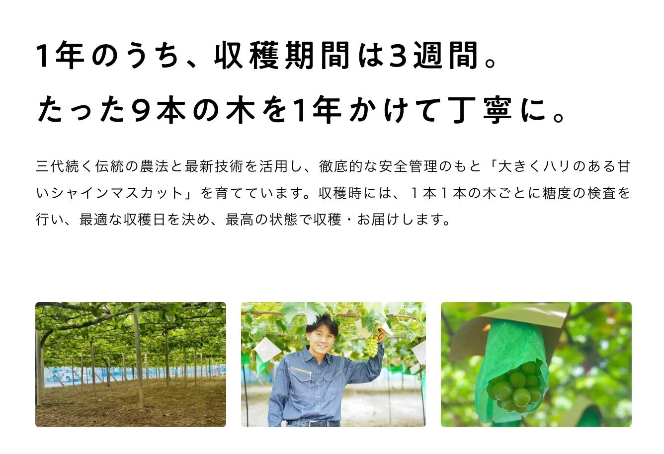 詳しくはこちらをご覧ください。:https://shinemuscat-kubota-farm.studio.site/works