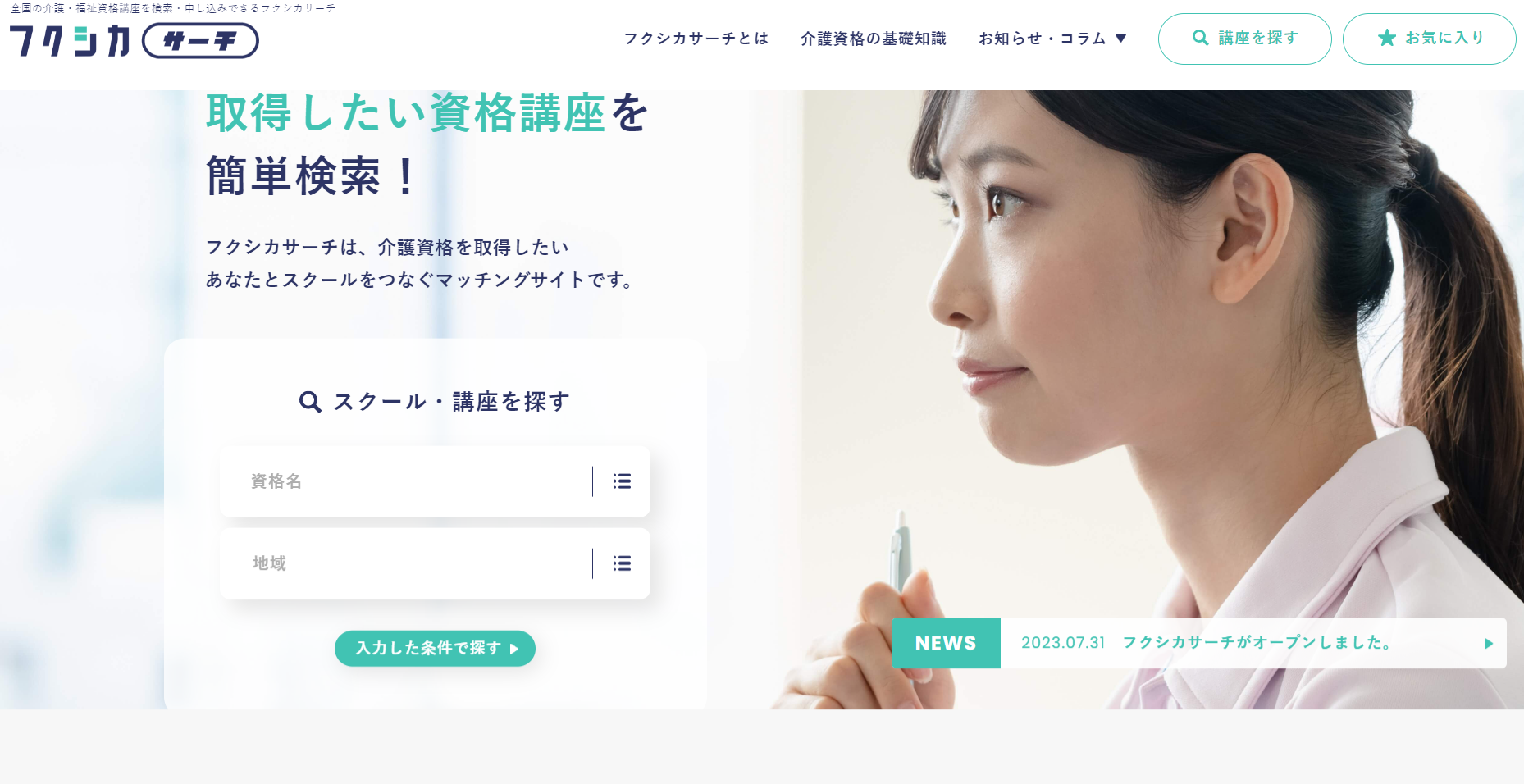 フクシカサーチとは? 介護資格業界初の「講座申込みサイト」