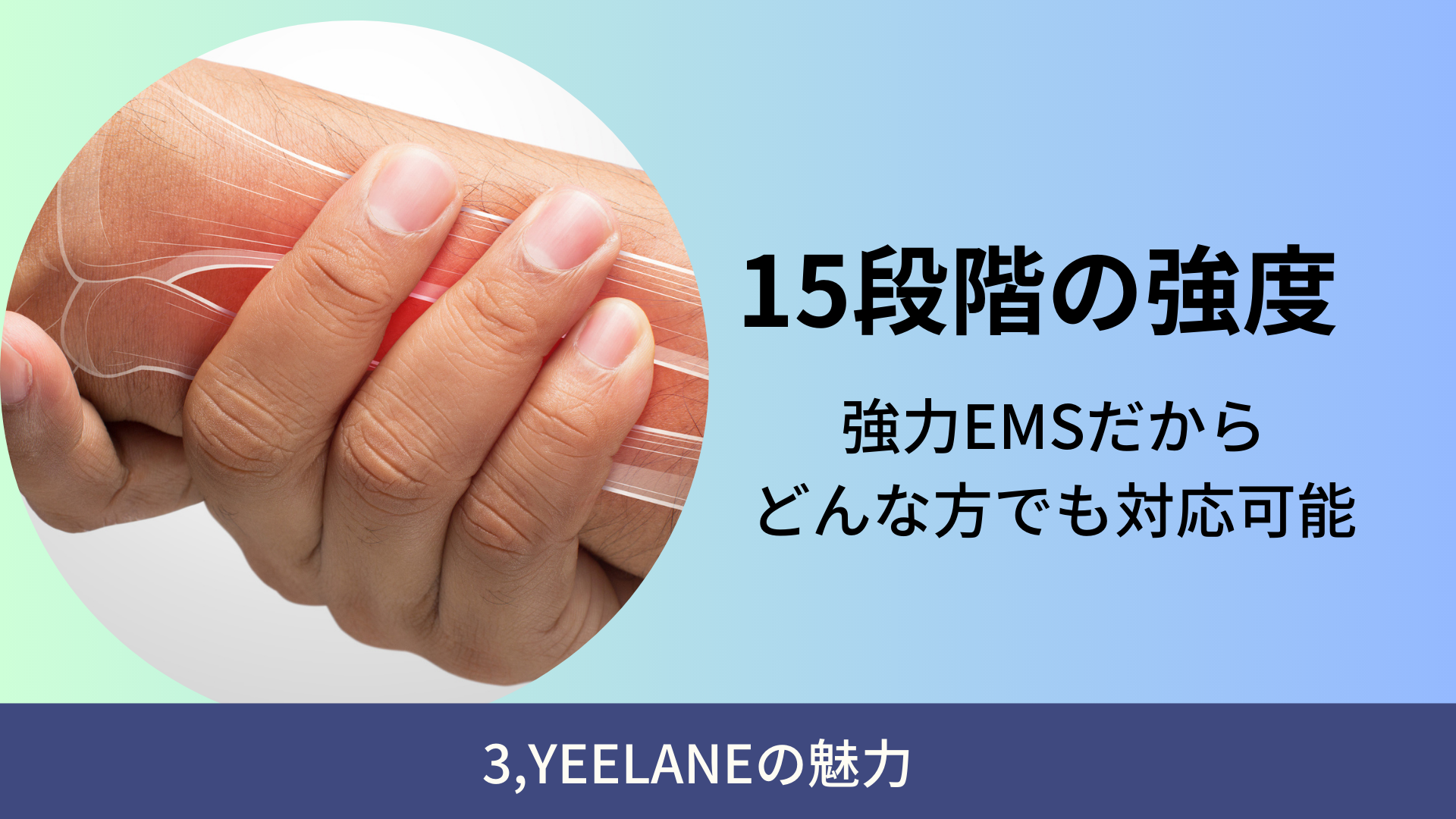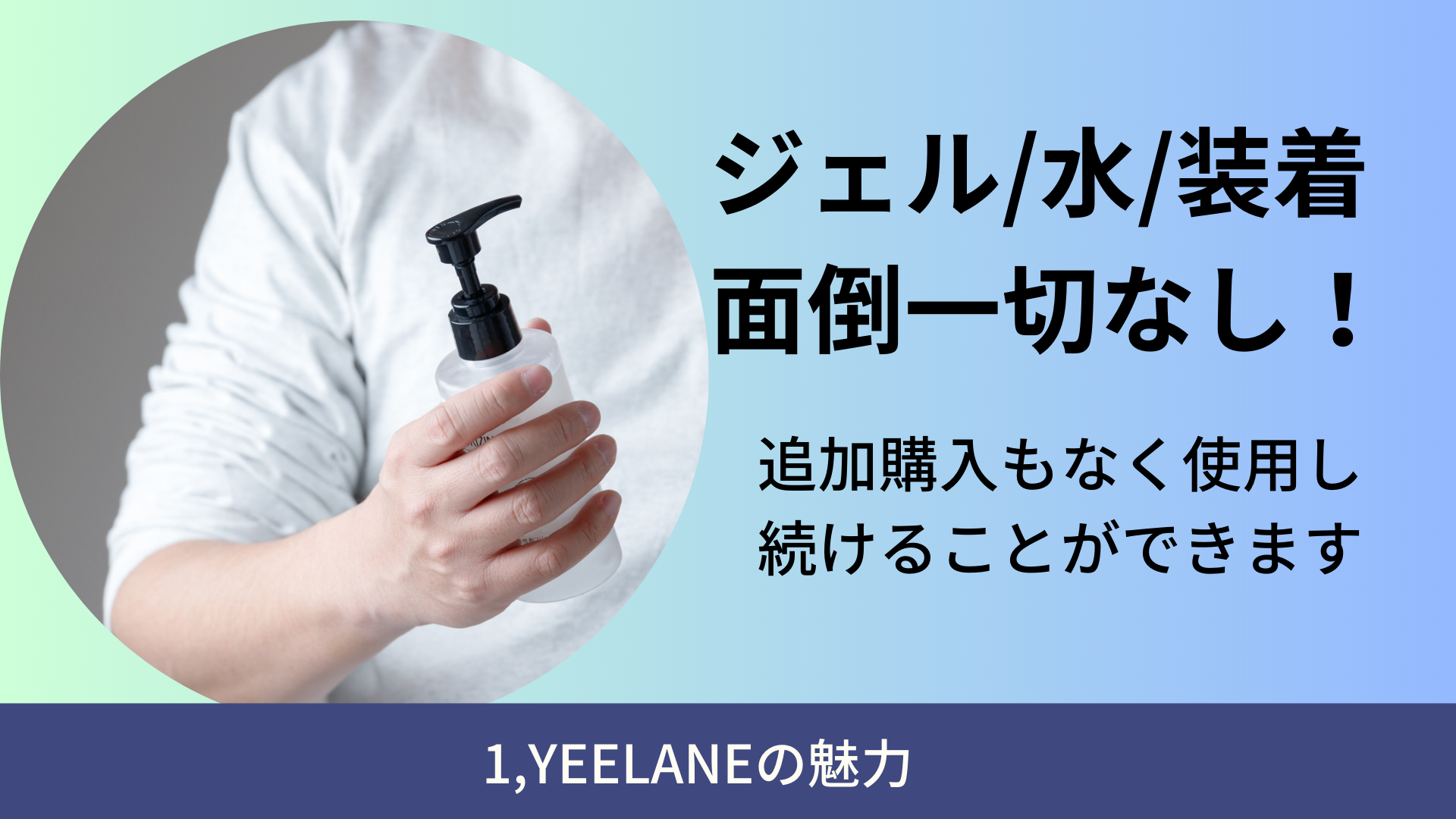 通常のEMSは水を吹きかけたり、ジェルを塗ったり、劣化したパッドの交換などが必要です。YEELANEはこのような面倒は一切なく、追加購入無しで使用できます。