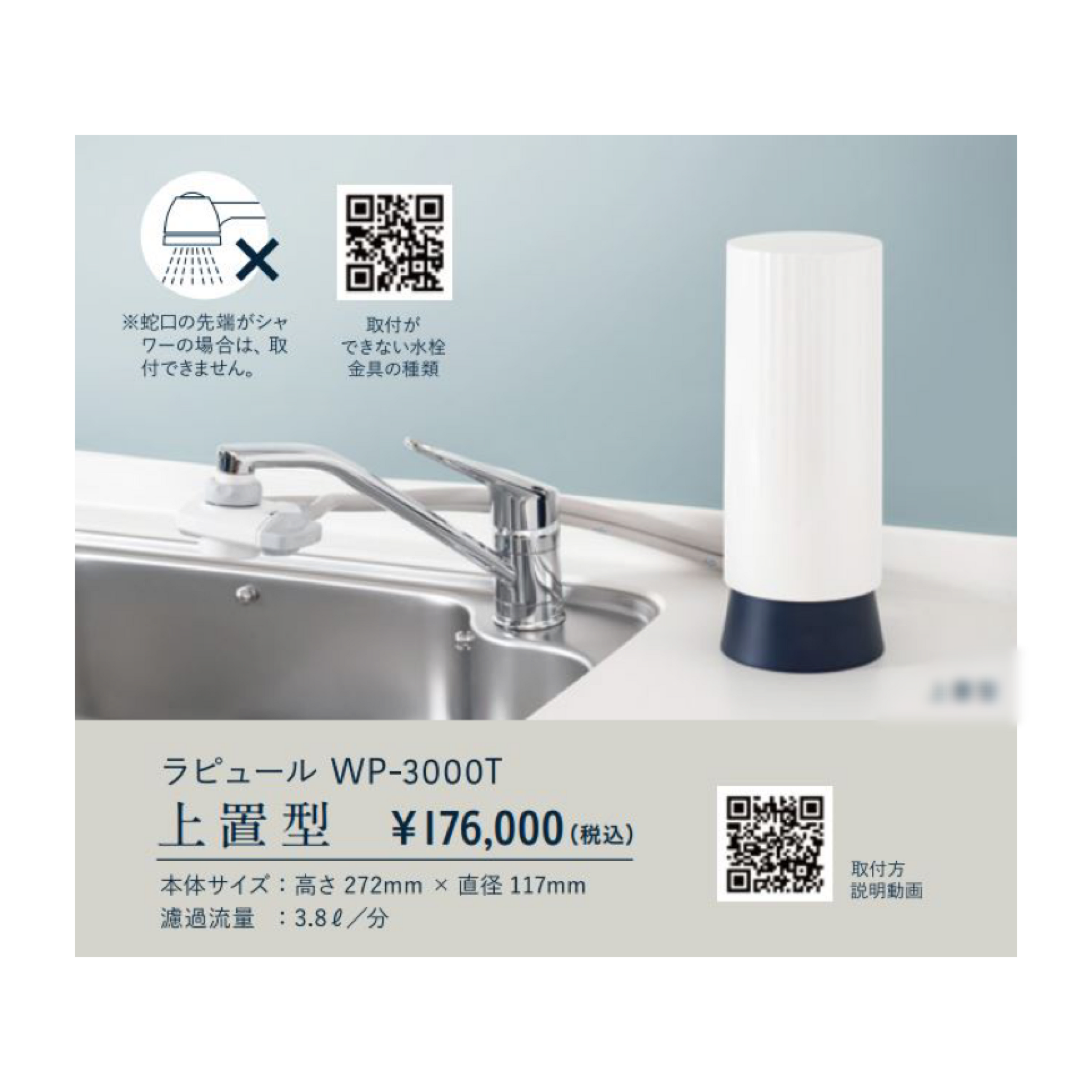 この度新発売するWP-3000シリーズは、前述したWP-1000のシリーズの販売を行う中で、数多くのお客さまから「水が美味しくなった」「浄水器を設置したお水を飲んでから体調がよくなった気がする」というような声を多数いただく一方、普段使いに水道水のお悩みの声も同等にいただいており、そのようなお客さまのお悩みにお応え出来る商品と自負しています。