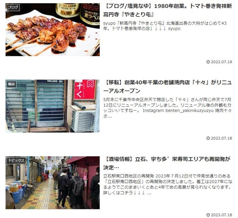 酒場にまつわる関連記事を毎日更新。名酒場の「開店閉店」や「イベント」などの旬な情報をいち早くキャッチすることができます。