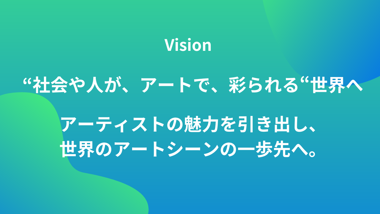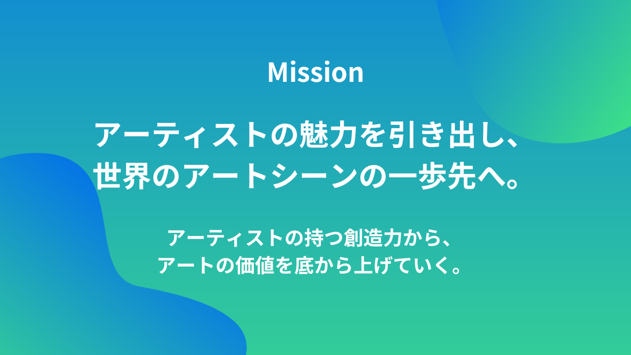 アーティストが単に作品を作るだけでなく、彼ら自身が輝き存在する社会の実現を目指し、アーティストの魅力を引き出し、世界のアートシーンの先端に立つことを目指します。アーティストの持つ創造力を活かし、アートの価値を根底から高めていくことが実現していきます。