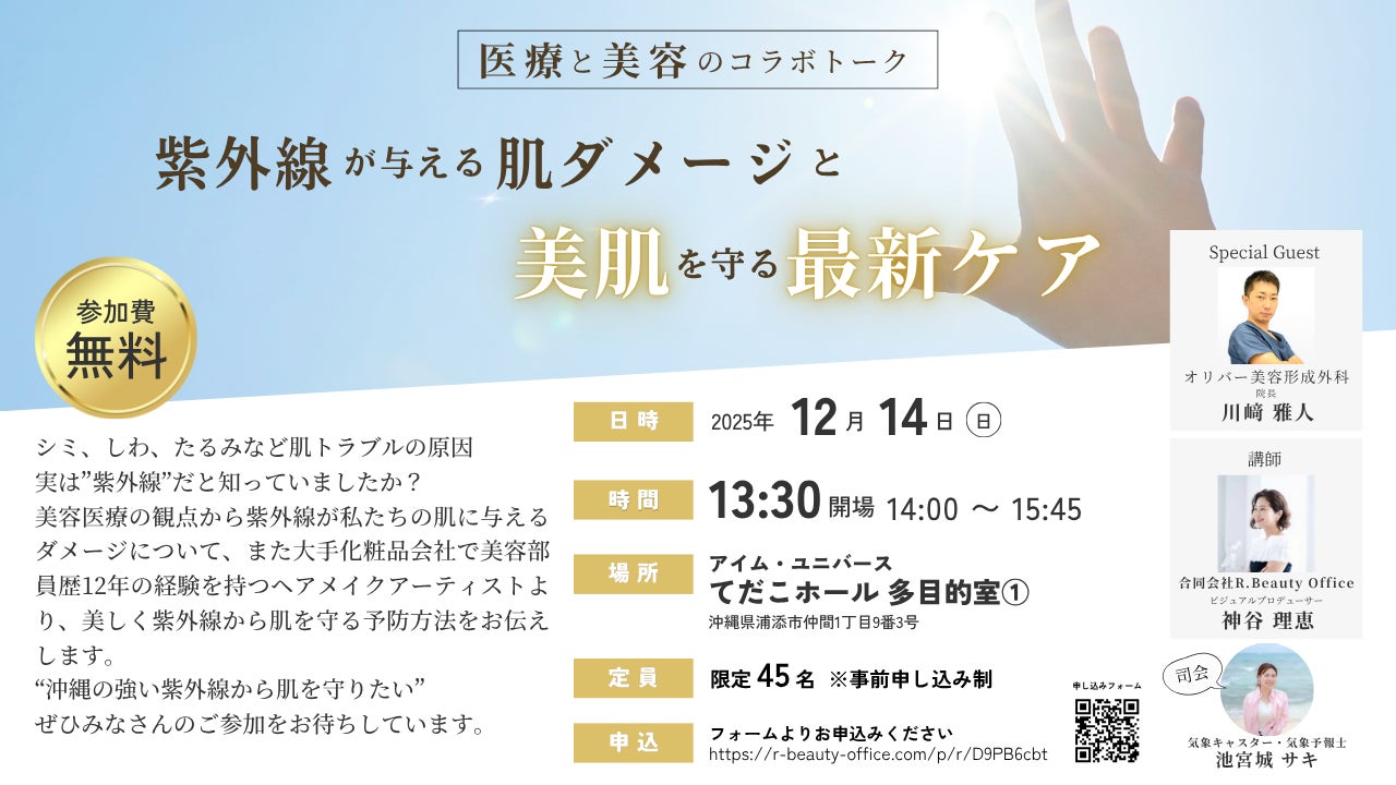 2025年11月4日合同会社R. Beauty Office秋以降も沖縄の強い紫外線に注意!医療と美容のスペシャリストが紫外線から肌を守る最新ケア方法を伝授!無料講演会12月14日(日)開催