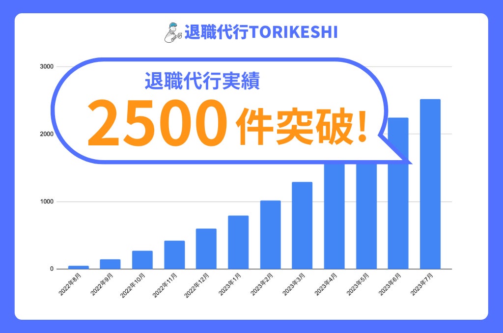 退職代行TORIKESHI開始1年で相談実績7000件、退職代行実績2500件を突破