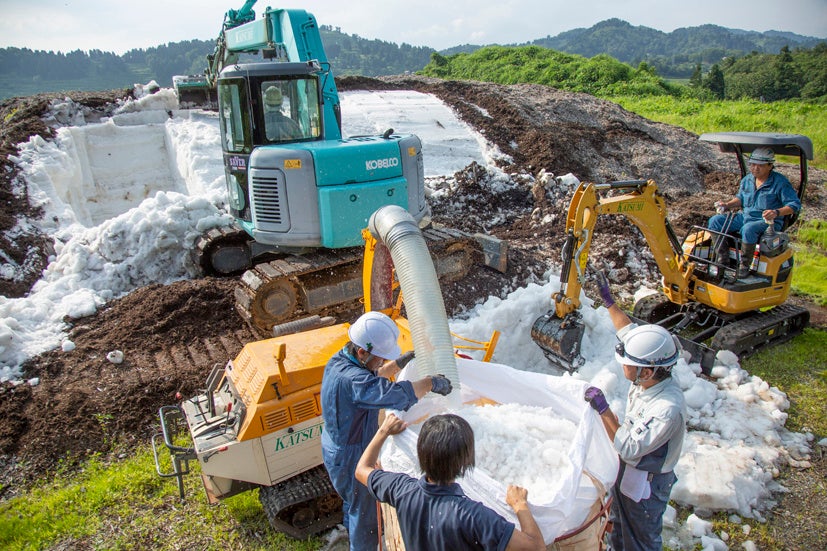 イベントに使用される天然雪は2022-2023シーズンに新潟県長岡市山古志に降り積もった雪になります。