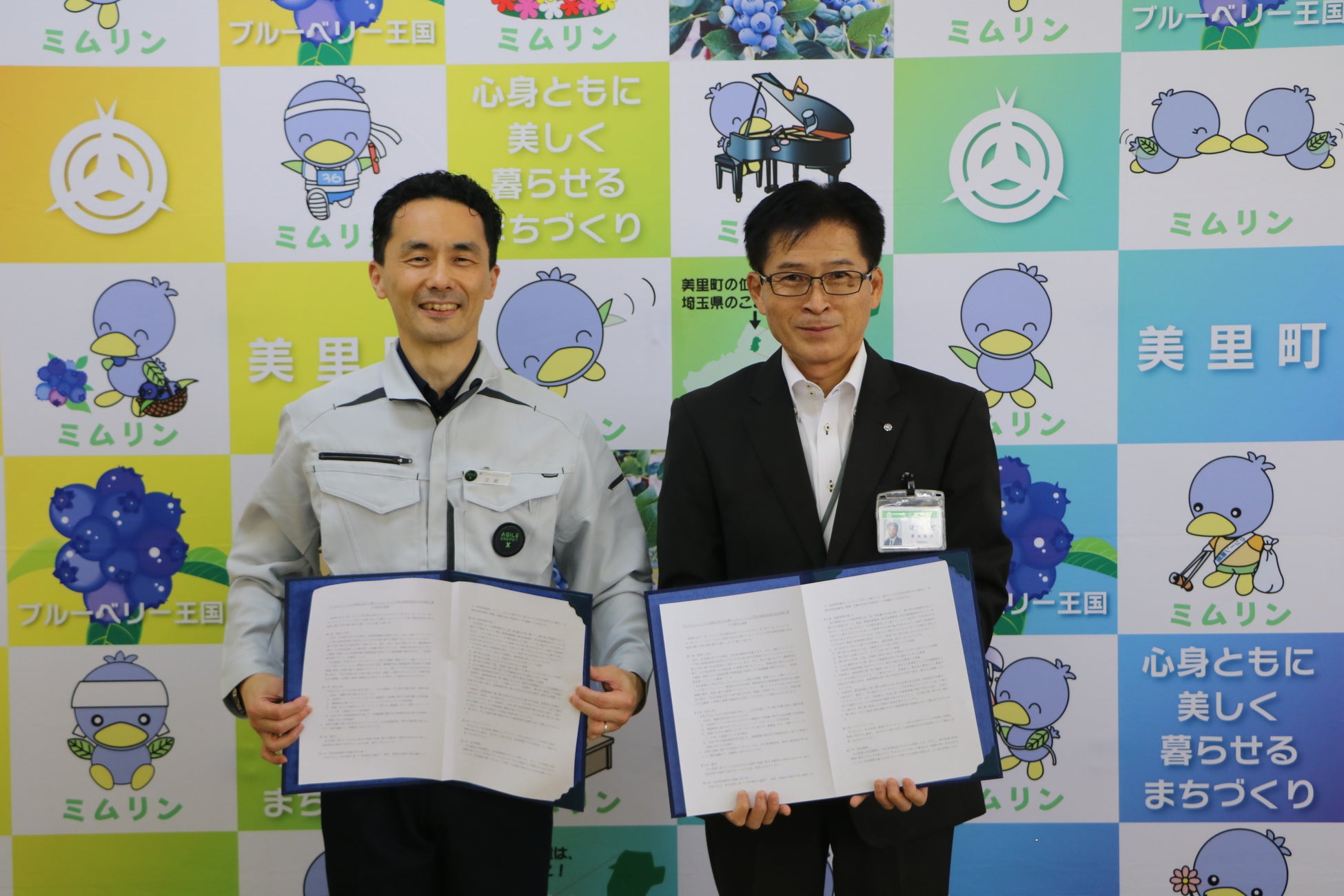【締結式の様子】(左)アジャイルエナジーX代表取締役社長 立岩健二、(右)美里町町長 原田信次
