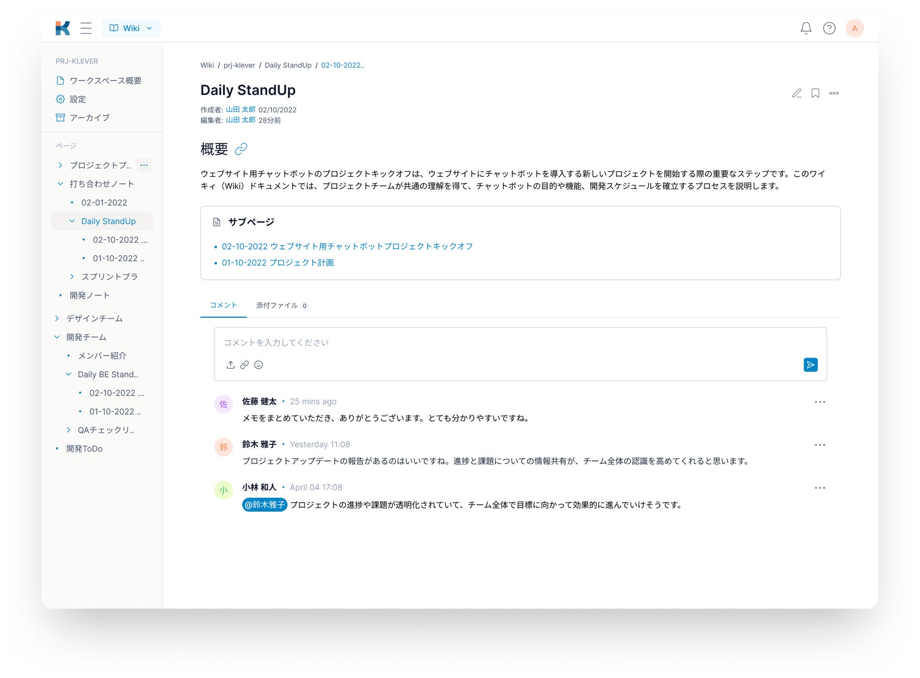 Klever Wikiでドキュメントを作成し、チームとリアルタイムで共同編集できる